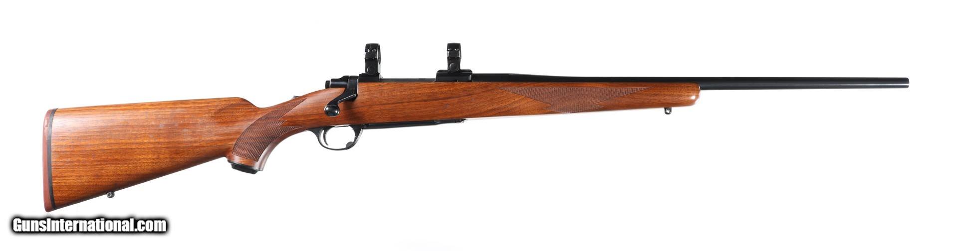 Description: Early 3 digit serial number flat bolt. About excellent overall condition with 2 areas of discoloration present on left side of barrel above forend. Manufactured in 1968, this Ruger M77 .308 bolt-action Rifle is a mechanically sound, aesthetically pleasing 1st Year Production. With a flat bolt and top tang safety indicative of early models, this M77 also features a blued, sightless, tapered round rifled barrel marked with the "Sturm Ruger & Co Southport, Conn. USA" address, a blued action with a flat bolt and tang safety marked "Ruger M77", and a lightweight, blackened floorplate. The action has scope mounts with Ruger factory rings and the checkered walnut 1-piece pistol grip stock bears a Ruger grip cap, a Ruger "Red Solid Pad", in addition to quick detachable sling bases. • Free Shipping, No Credit Card Fees. • Lay-a-way available for this firearm. • 1/3 Down, a 1/3 in 30 Days 1/3 in 60 Days. SOLD Curio/Relic: Yes Manufacturer: Ruger Model: M77 Serial Number: 659 Barrel Length: 22 |