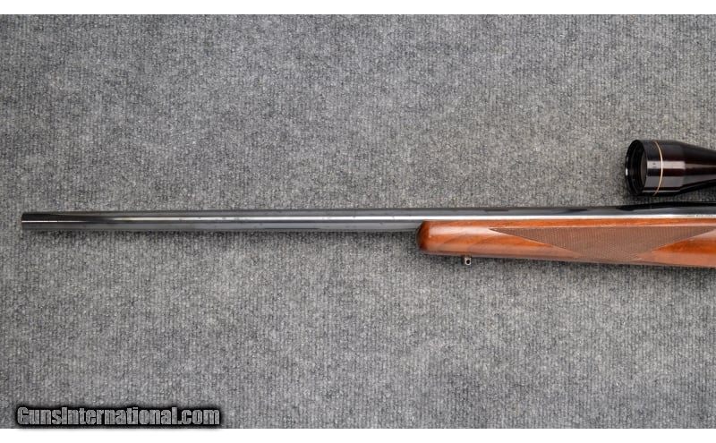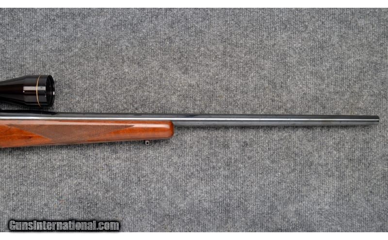 Description: For your consideration, a Ruger M77 chambered in .300 Winchester Magnum. This piece is an early production example with the tang mounted safety and so-called flat top receiver predating Ruger's integral scope mounts, and dates approximately to 1974-5. The action is topped with a Leupold VARI-X II 3-9x40 scope in Weaver rings. .300 Winchester Magnum SOLD Metal Condition: Good Wood Condition: Good+ Bore Condition: Excellent Barrels: 25 Triggers: Smooth Face Stock Dimensions: 13.75" LOP Fore End: Checkered Butt Pad: Rubber Weight: 9 LBS Sights: Leupold Scope Item Location: Hamburg, PA |