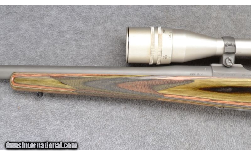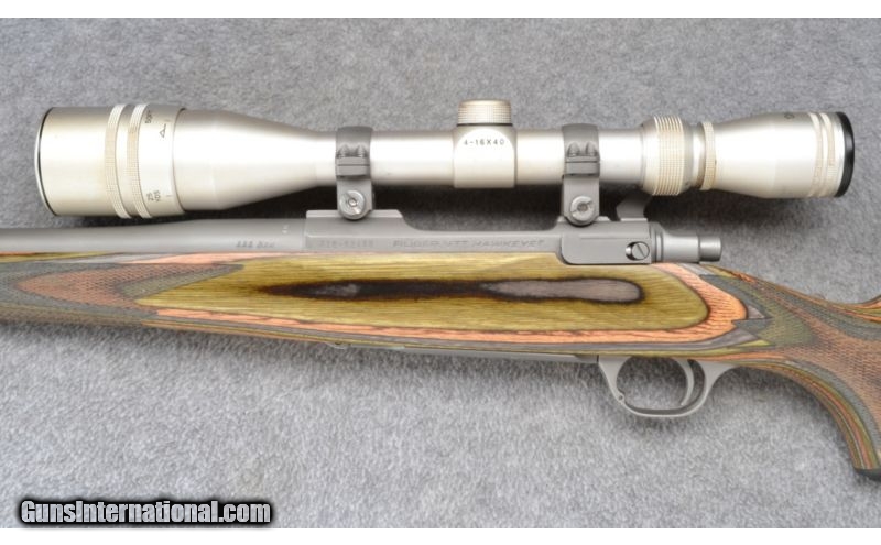 Description: Barrel shows a couple light use scuffs. Remains excellent throughout complete with a Tasco 4x-16x optic. No box. SOLD Manufacturer: S/N 710-82XXX Caliber Info: .223 Rem. Metal Condition: Excellent Wood Condition: Excellent Bore Condition: Excellent Barrels: 22 Triggers: Factory Stock: Checkered Laminate Pistol Grip with Black Cap Stock Dimensions: 13 5/8" LOP Fore End: Checkered Laminate Butt Pad: Black Rubber Weight: 9 1/2 LB Sights: Tasco 4x-16x Optic Item Location: Wheeling, WV |