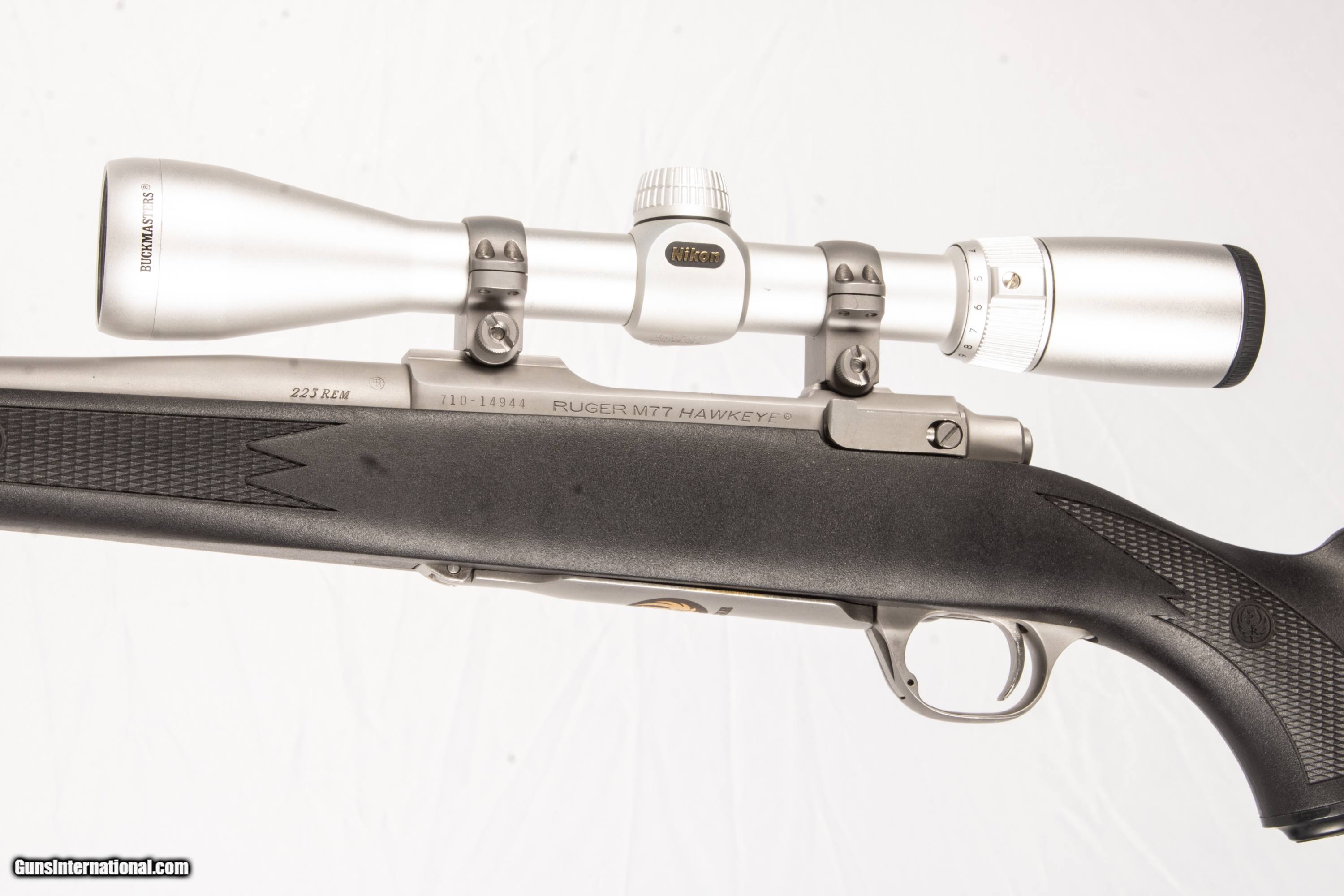 Ruger M77 Hawkeye chambered in 223 Remington with a 22 inch barrel bright & shiny bore and a Nikon Buckmaster 3-9x40 optic. This is a used firearm that is in excellent condition and is covered by Dury's Lifetime Warranty.