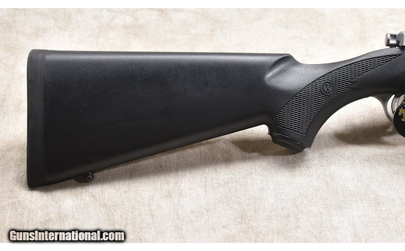 Description: Built for foul weather hunting, this rifle has stainless hardware and black synthetic stock. It is built short, light, and fast for easy carry and quick response. YOM: 2007 .280 Remington SOLD Chambers: 4 rounds Metal Condition: Excellent Wood Condition: Excellent. Bore Condition: Shiny and bright Barrels: 22 inches Triggers: Factory trigger Stock Dimensions: LOP: 13-1/2 inches Butt Pad: Soft rubber pad. Weight: 7 lb - 3 oz Sights: Set up for scope of your choice. Item Location: Rogers |