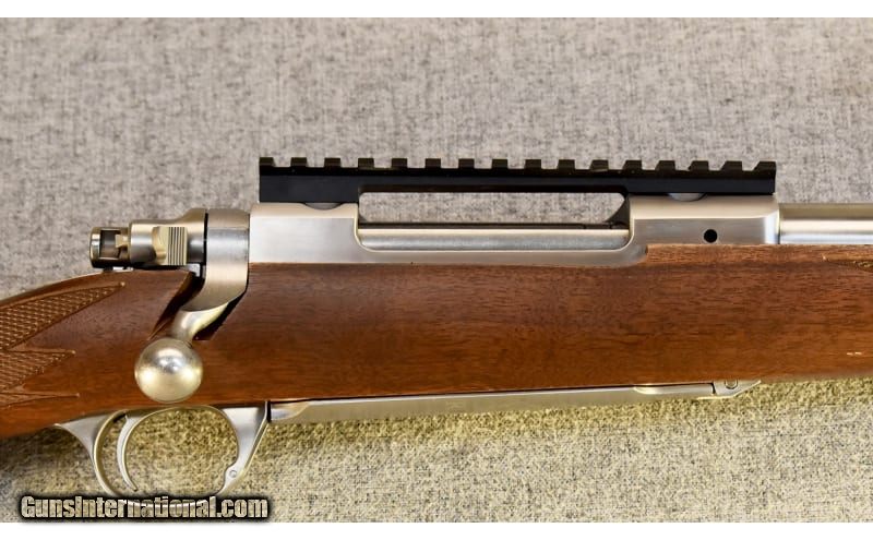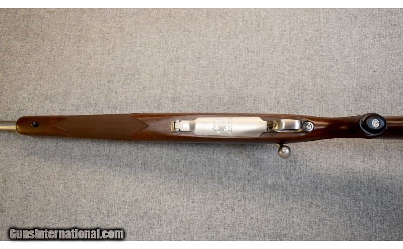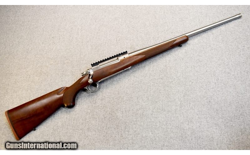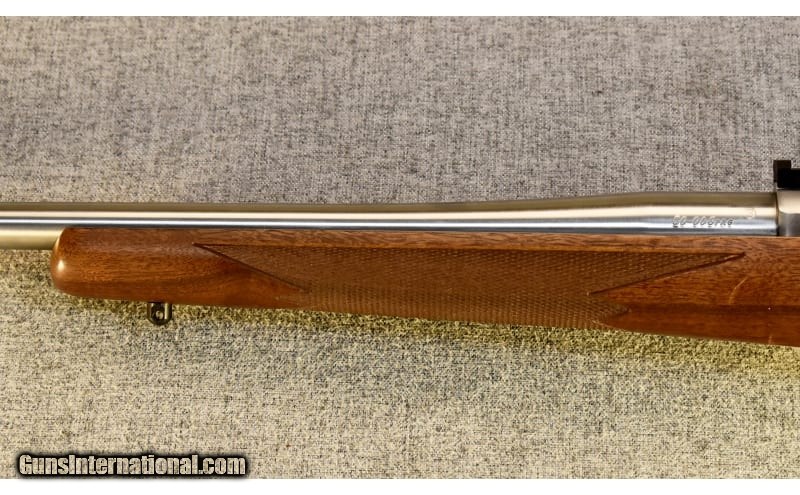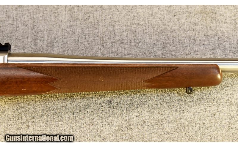 Description: This is a pre-owned stainless Ruger M77 Hawkeye in .30-06 Springfield .30-06 Springfield SOLD Metal Condition: Very good with a few small scratches Wood Condition: Very good with a few small scratches and dents plus a small spot of crushed checkering on the right side of the fore end Bore Condition: Clean with bright lands Barrels: 22" threaded Stock Dimensions: 13 1/2" LOP Fore End: Checkered walnut Butt Pad: Red Ruger pad Weight: 7 Lbs. 6 Oz. Sights: Picatinny rail installed Item Location: Glendale, AZ |
