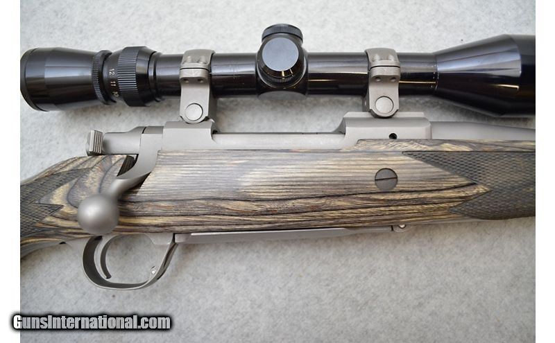 Description: Overall good shape. Metal has a small number of handling marks to the finish and a few tiny spots of corrosion. The stock has a small number of light handling marks as well though none are worthy of individual note. .300 Ruger Compact Magnum SOLD Chambers: Bolt action fed from an internal magazine with a hinged floorplate. Metal Condition: Very good. Wood Condition: Very good. Bore Condition: Excellent. Strong rifling and healthy shine. Barrels: 17" Matte stainless with aftermarket muzzle brake. Triggers: Matte stainless with smooth surface. Stock Dimensions: Gray laminated wood with diamond pattern checkering and a 12¼" LOP. Fore End: Gray laminated wood with wrap around diamond pattern checkering. Butt Pad: Ruger branded black rubber pad. Weight: 8lbs 4oz Sights: No iron sights. Comes with a Simmons3-9x40mm scope. Chokes: N/A Item Location: Green Bay |
