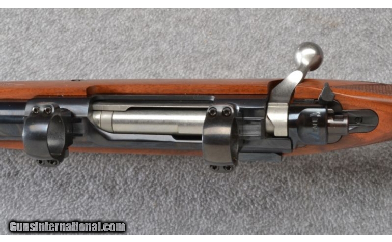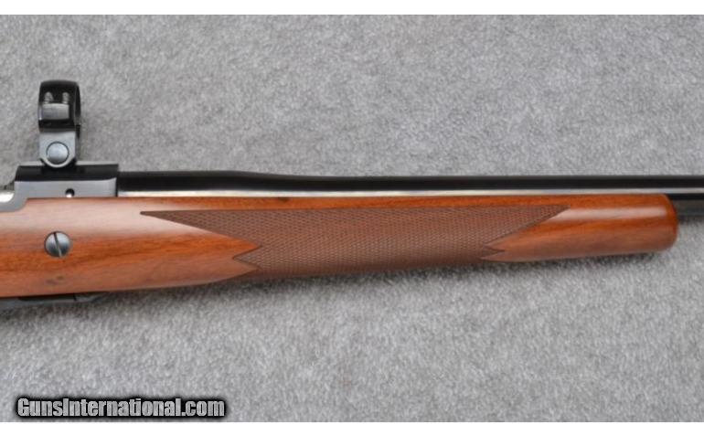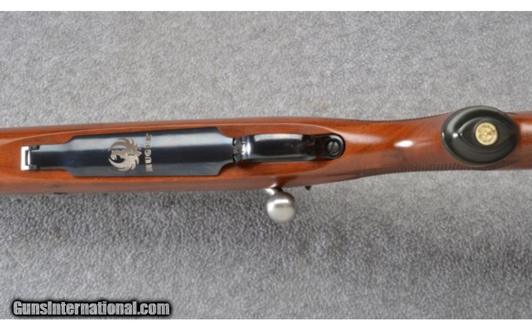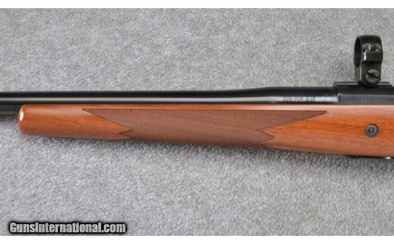 Description: Rear sight has been removed for scope mounting and is included with the rifle. Remains excellent throughout showing little use. Complete with Ruger rings. No box. SOLD Manufacturer: S/N 711-34XXX Caliber Info: .300 Win. Mag. Metal Condition: Excellent Wood Condition: Excellent Bore Condition: Excellent Barrels: 23 Triggers: Factory Stock: Checkered Walnut Pistol Grip with Black Cap Stock Dimensions: 13 1/2 Fore End: Checkered Walnut Butt Pad: Red Rubber Weight: 8 1/2 LB Sights: White Bead Front - Rear Sight Removed - Ruger Rings Included Item Location: Wheeling, WV |