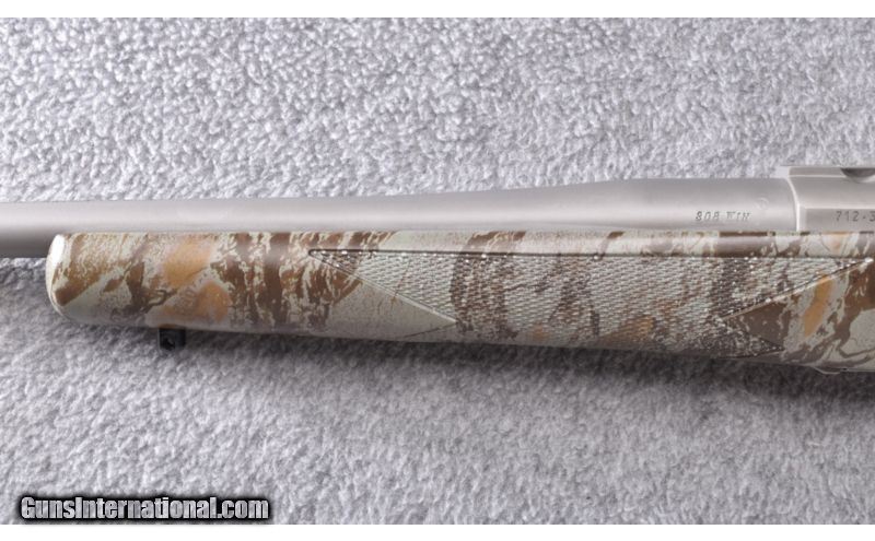 Description: Excellent overall condition with an excellent bore! Complete with box! SOLD Manufacturer: S/N 712-30XXX Caliber Info: .308 Win. Metal Condition: Excellent Bore Condition: Excellent Barrels: 24" Matte Stainless with Muzzle Brake Triggers: Factory Stock: Checkered Natural Gear Hardwood Camo Stock Dimensions: 13 1/8" LOP Fore End: Checkered Natural Gear Hardwood Camo Butt Pad: Black Rubber Butt Pad with Spacer Weight: 7 1/2 LB Sights: None - Integral Scope Mount Item Location: Avon, OH |