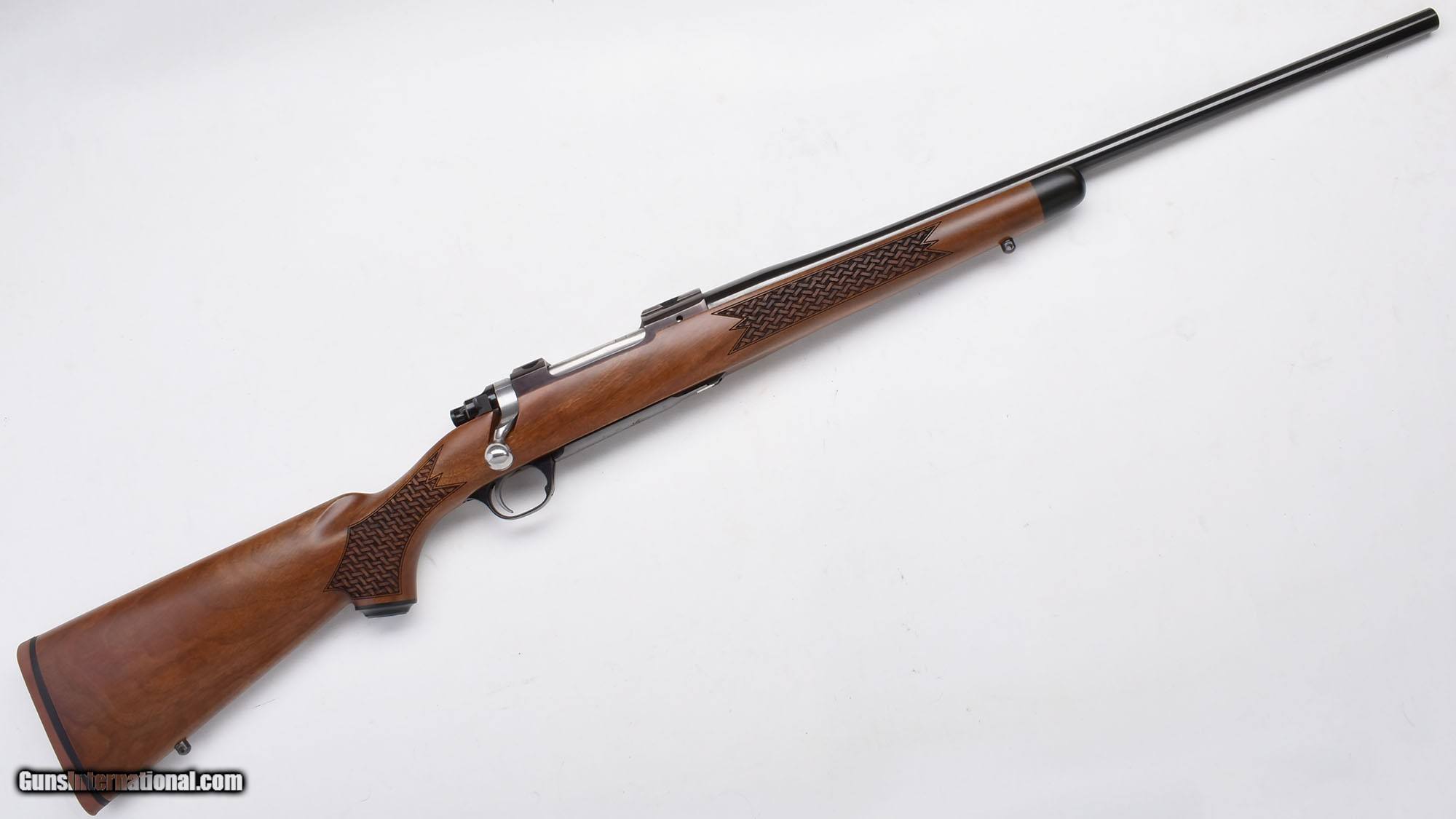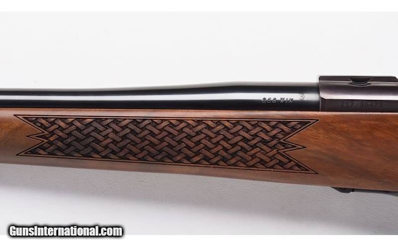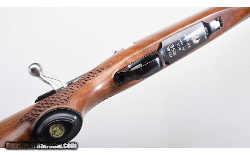 Description: High Condition pre-owned Ruger M77 Hawkeye chambered in .358 Winchester. 1 of 150 produced in 2016; engraved on commemorative magazine floorplate. Features walnut basket weave stock. Bore presents bright with sharp rifling. Mechanism is crisp. Finish is well-preserved. Includes factory box. .358 Winchester SOLD Metal Condition: Polished Blue Wood Condition: Basket Weave Walnut Bore Condition: Bright and Sharp Barrels: 22.0 Triggers: Single Stage Stock Dimensions: LOP 13.5 Butt Pad: Ruger Recoil Pad Weight: 7 lbs Item Location: Buda, TX |
