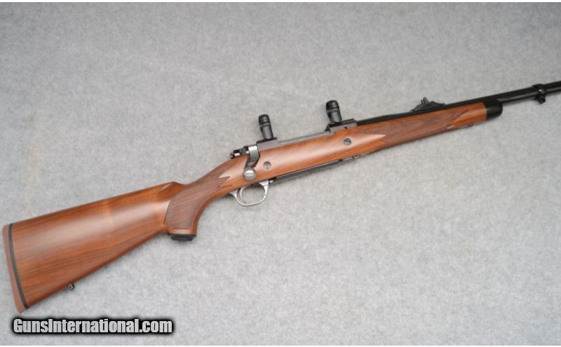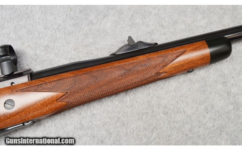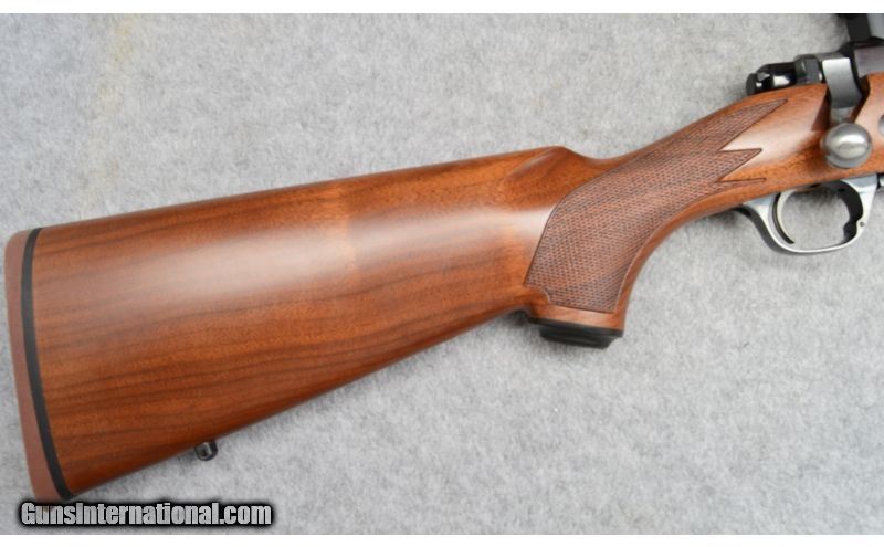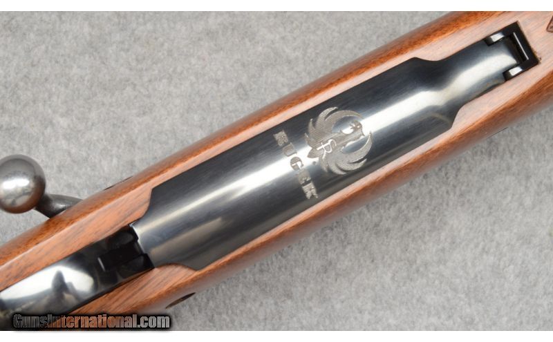 Description: SOLD Caliber Info: .375 Ruger Metal Condition: Excellent. Wood Condition: Excellent. Bore Condition: Shiny with good rifling. Barrels: 24 Stock: Checkered walnut. Fore End: Checkered walnut. Butt Pad: Ruger red rubber pad with one blemish. Weight: 8-lbs., 3-ozs. Sights: 1" Ruger rings, front bead, adjustable rear blade. Item Location: Charleston, WV |