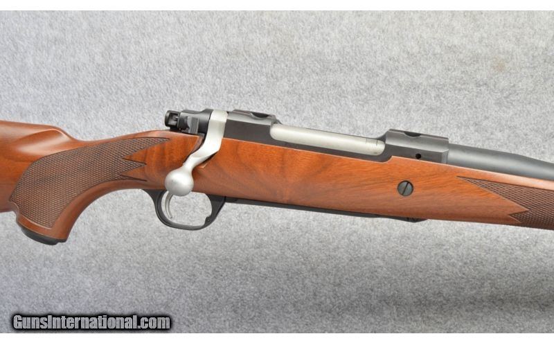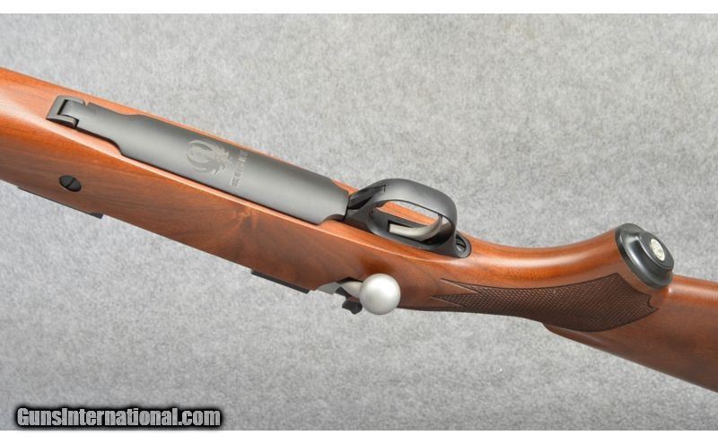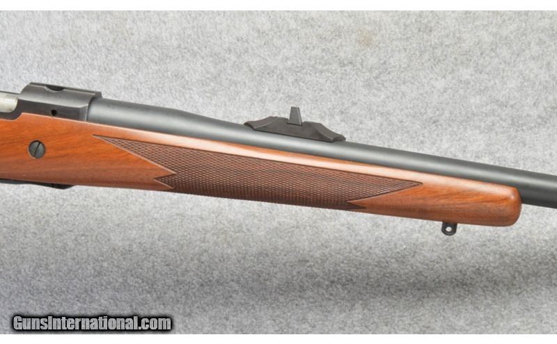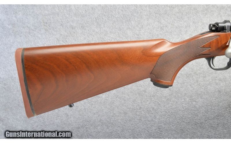 Description: Ruger M77 Hawkeye chambered in 375 Ruger. Shows minimal handling, includes factory box. SOLD Caliber Info: 375 Ruger Metal Condition: Satin blue, few light marks Wood Condition: Few slight scratches Bore Condition: Bright and Sharp Barrels: 23 Inch Stock: Capped pistol grip, Checkered Wood Stock Dimensions: 13 1/2" LOP Butt Pad: Rubber Recoil Pad Weight: 7 Lbs 13 Ozs Sights: Windage adjustable rear sight, Banded bead front Item Location: Buda, TX |