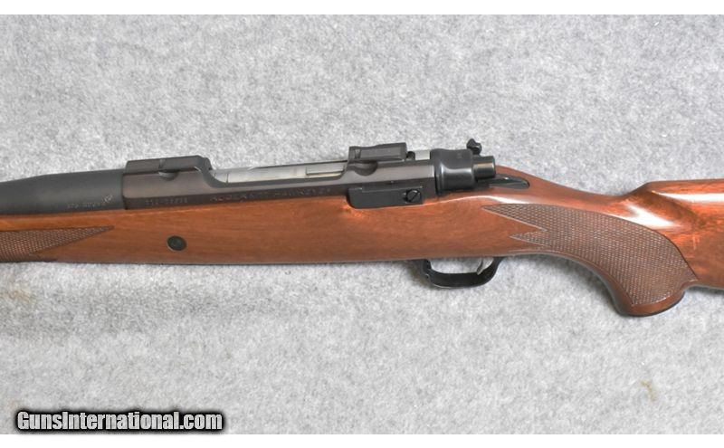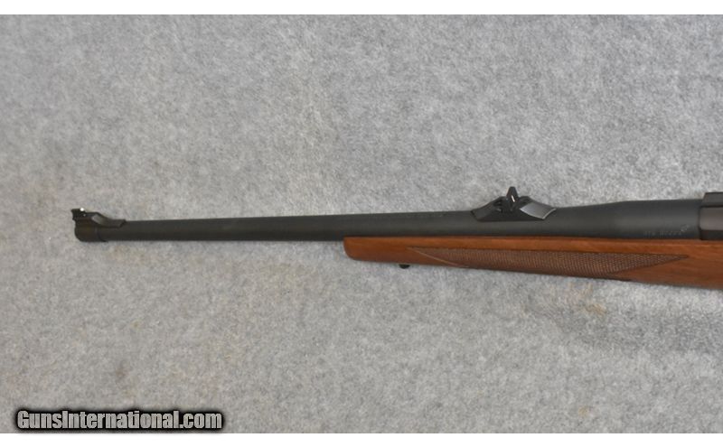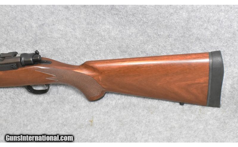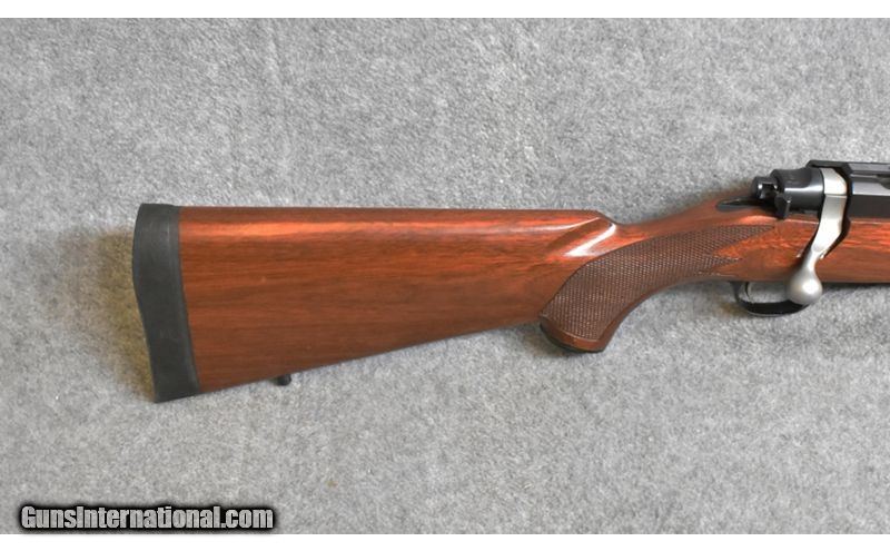 Description: Ruger M77 Hawkeye in .375 Ruger .375 Ruger SOLD Metal Condition: Good, a few scratches along the barrel and receiver Wood Condition: Good, a few scratches and chips Barrels: 23 inch Triggers: Single grooved trigger Stock Dimensions: 13 1/4 inch LOP Fore End: Checkered, straight wood Butt Pad: Black rubber pad Sights: White bead front, V-notch rear, grooved receiver Item Location: Kansas City, KS |