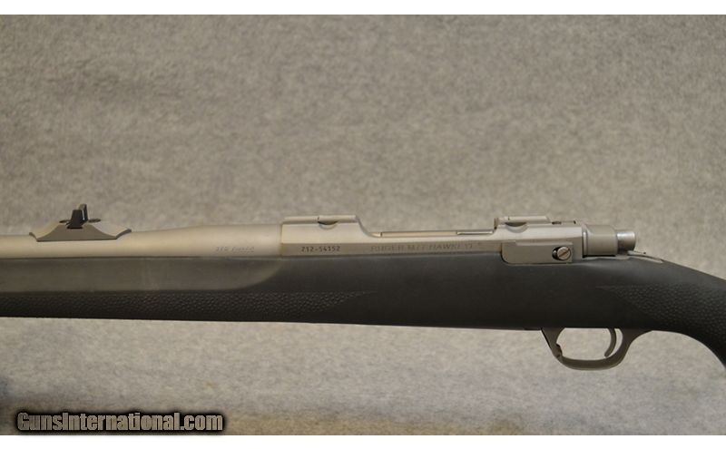 Description: This Ruger M77 Hawkeye has a non-rotating, Mauser-type controlled round feed extractor and features a fixed blade-type ejector that positively ejects empty cases as the bolt is moved fully rearward. It has a hinged, solid steel floorplate for easy unloading without have to chamber each cartridge. Features an engraved Ruger logo and patented latch that is flush with the trigger guard to avoid accidental dumping of cartridges. It has a 3 position safety that is easily accessible and allows the shooter to lock the bolt or to load and unload the rifle with the safety engages. It has the Hogue OverMolded stock that is molded from durable synthetic rubber that provides a soft, recoil absorbing feel without affecting accuracy. It features a rugged, one-piece, stainless steel bolt, and integral scope mounts, machines directly on the solid-steel receiver, provide a stable mounting surface for included scope rings, eliminating a potential source of looseness and inaccuracy in the field. .375 Ruger SOLD Metal Condition: Good Bore Condition: Good Barrels: 20" Cold hammer-forged barrel Weight: 8 Lbs 1 oz Sights: Bead/Adjustable - Scope rings are included Item Location: Huntsville, AL |