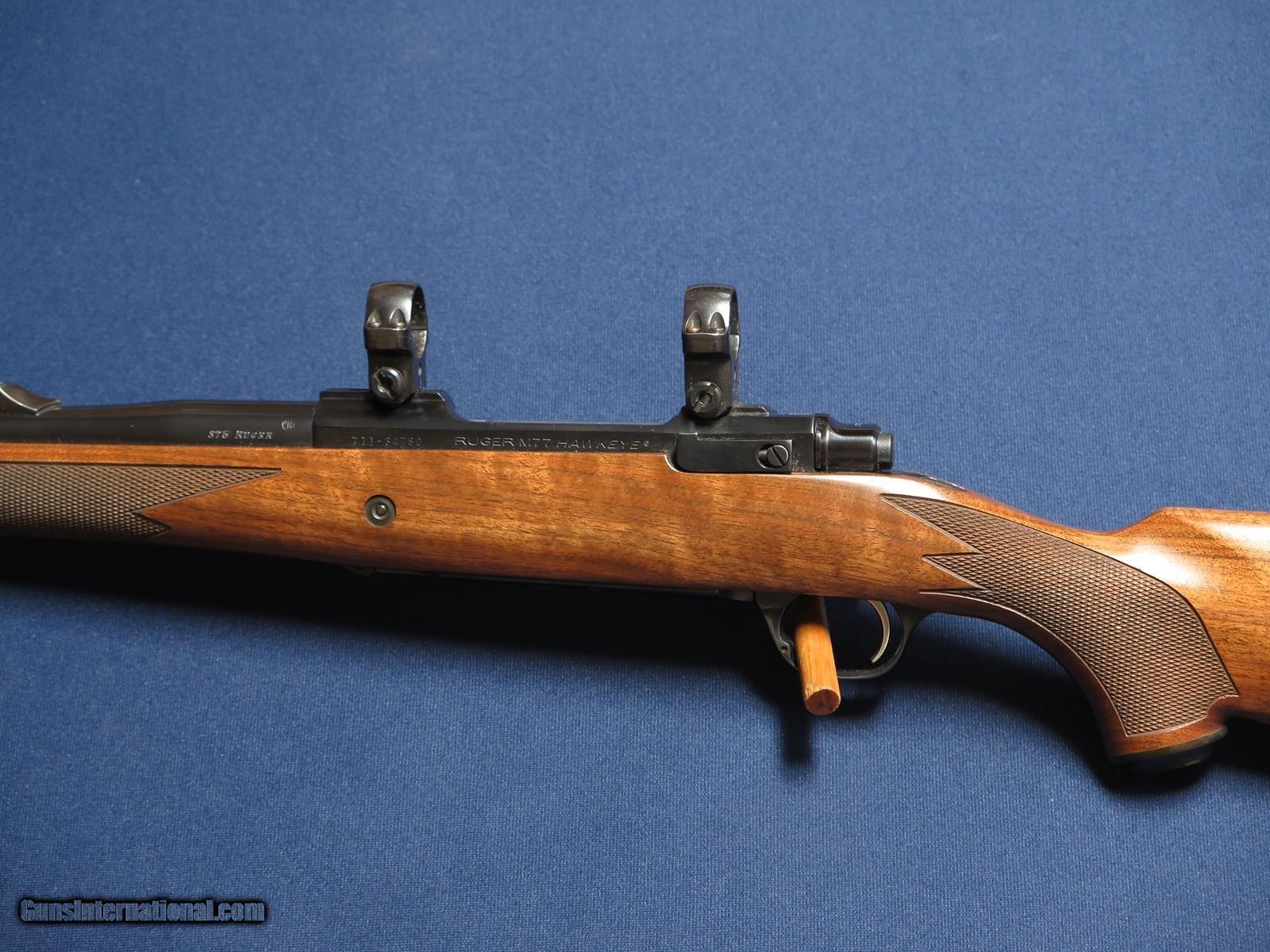 Description: Ruger M77 Hawkeye 375 Ruger. 23 inch barrel with sights. Barrel band. Ruger 1 inch rings. 97% condition. Excellent bore. SOLD |