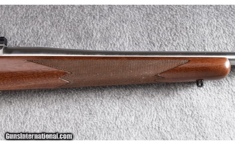 Description: This Ruger M77 Hawkeye was manufactured in 2023 and remains in excellent condition. The stainless steel finish shows very little sign of wear. The wood remains excellent as well as the bore. The 22" stainless barrel is threaded 5/8x24 at the muzzle to accept a multitude of devices. Chambered in the popular 6.5 PRC cartridge. Beautiful rifle!! 6.5 PRC SOLD Metal Condition: Excellent Wood Condition: Excellent Bore Condition: Excellent Barrels: 22" Stainless Threaded 5/8x24 Triggers: Factory Stock Dimensions: 13 1/2" LOP Fore End: Checkered Walnut Semi Pistol Grip Stock - Checkered Walnut Free Float Forend Butt Pad: Brown Rubber Butt Pad Weight: 7 lbs Sights: None - Ruger Scope Bases Present Item Location: Wheeling |
