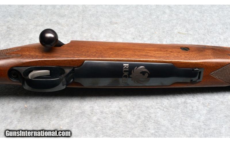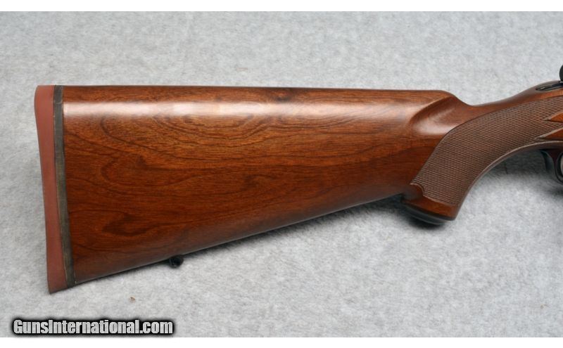 Description: This Ruger M77 Hawkeye is in like new condition. The wood is finished in a matte gloss and the metal on the rifle is deep blued. This would make an excellent choice for a big game hunter. SOLD Manufacturer: Newer production. Caliber Info: 6.5x55 Swedish Chambers: Repeating Bolt action Rifle. Metal Condition: Excellent with very little signs of use. Wood Condition: Excellent with very little signs of use. Bore Condition: Bright and shiny. Barrels: 24 Inch gloss blued barrel. Fold down rear sight and front blade sight with brass bead. Also has sling mount attached. Triggers: Adjustable single stage. Stock: Matte gloss checkered walnut. Stock Dimensions: 13 1/2 inch LOP. Fore End: Matte gloss checkered walnut. Butt Pad: Red Ruger recoil pad. Weight: 7 lbs. 8 ozs. Sights: Folding rear sight and front blade with brass bead. Item Location: Richfield, WI |