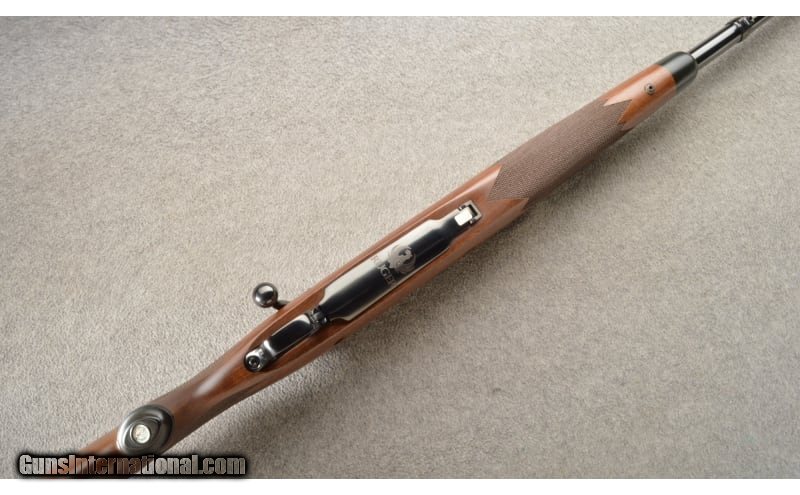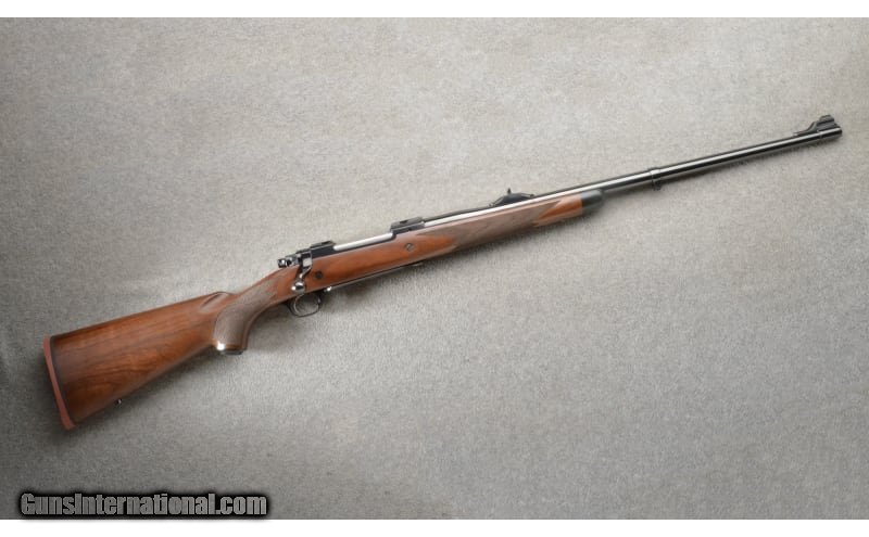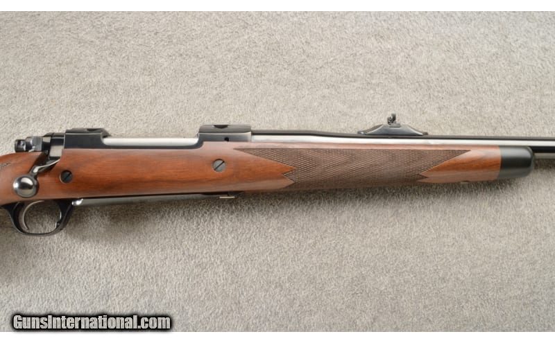 Description: Ruger Hawkeye African Rifle (also known as the Ruger M77 Hawkeye African) chambered in 35 Whelen. This Ruger has a 24" barrel with a gold bead front/folding rear sight. The stock is checkered walnut with a metal grip cap and ebony forend tip. The solid steel floorplate is engraved with the Ruger logo. Other features are a 3 position safety, non-rotating, Mauser-type controlled round feed extractor and a fixed blade-type ejectores with the factory box, owners manual, cable lock and Ruger factory rings. .35 Whelen SOLD Chambers: Bolt action. Metal Condition: New. Wood Condition: New. Bore Condition: New. Barrels: 24" barrel. Triggers: Single. Stock Dimensions: LOP 13.5". Fore End: Checkered. Butt Pad: Rubber. Sights: Adjustable. Item Location: Owatonna, MN |