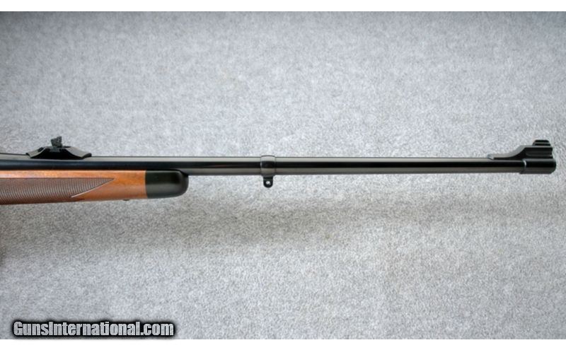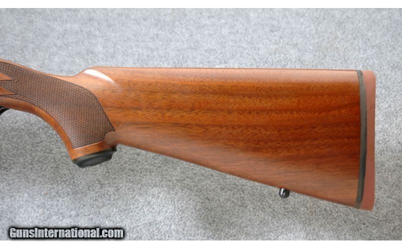 Description: This Ruger M77 Hawkeye African chambered in the 6.5x55 Swedish round features: a three position safety, a control round feed action with a Mauser style claw extractor for positive feeding and extraction, classic express style open sights, a blued bolt handle, Ruger red rubber recoil pad, a hinged floor plate for safe unloading, a barrel band with swivel stud, an American walnut stock with and ebony tip and two swivel studs. This is truly a classic styled rifle ready for the plains of Africa. SOLD Manufacturer: 2018 Caliber Info: 6.5x55mm Metal Condition: NEW Wood Condition: NEW Bore Condition: NEW Barrels: 24 inch cold hammer forged barrel with 1:8 inch twist and barrel band sling swivel Triggers: Ruger LC6 trigger Stock: Checkered walnut pistol grip stock Stock Dimensions: 13 1/2 inch LOP Fore End: Checkered walnut fore end with ebony tip Butt Pad: Ruger red rubber pad Weight: 7 lbs. 7 oz. Sights: Dovetailed for scope mounting, scope rings, shallow express style folding leaf rear sight and bead front sight on ramp Extras: Box and accessories Item Location: Lehi, UT |