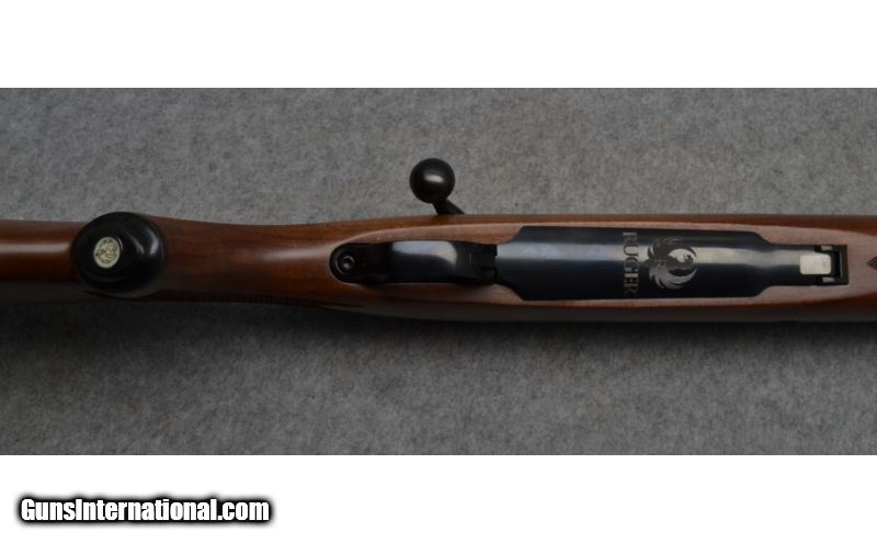 Description: A factory NEW Ruger M77 Hawkeye African chambered in the 6.5x55 Swedish round features: a three position safety, a control round feed action with a Mauser style claw extractor for positive feeding and extraction, classic express style open sights, a blued bolt handle, Ruger red rubber recoil pad, a hinged floor plate for safe unloading, a barrel band with swivel stud, an American walnut stock with and ebony tip and two swivel studs. This is truly a classic styled rifle ready for the plains of Africa. SOLD Manufacturer: 2018 Caliber Info: 6.5x55mm Metal Condition: NEW Wood Condition: NEW Bore Condition: NEW Barrels: 24 inch cold hammer forged barrel with 1:8 inch twist and barrel band sling swivel Triggers: Ruger LC6 trigger Stock: Checkered walnut pistol grip stock Stock Dimensions: 13 1/2 inch LOP Fore End: Checkered walnut fore end with ebony tip Butt Pad: Ruger red rubber pad Weight: 7 lbs. 10 oz. Sights: Dovetailed for scope mounting, scope rings, shallow express style folding leaf rear sight and bead front sight on ramp Extras: Box and accessories Item Location: Woodbury, MN |