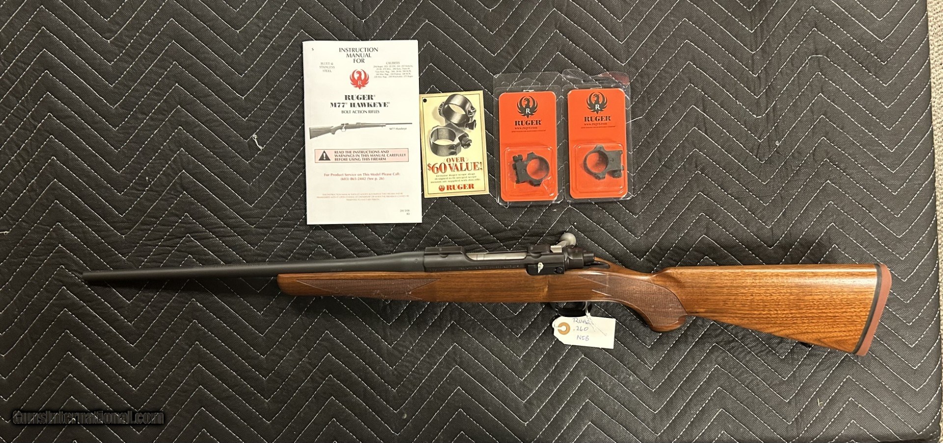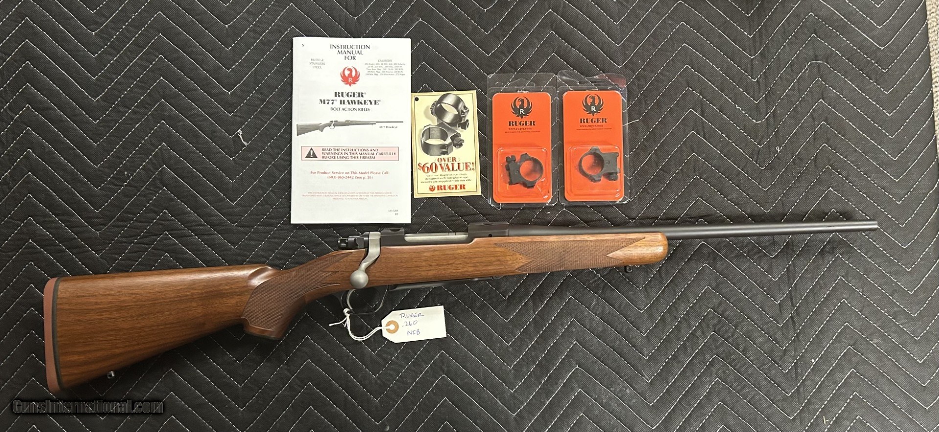 Description: Guns Listing ID: 1352014 RUGER M77 HAWKEYE COMPACT - .260 REM - 4 ROUNDS - 16.5 \" NEW IN BOX (D2 STORE LOCATION) SOLD Manufacturer: RUGER Model: M77 HAWKEYE COMPACT Caliber Info: .260 REM Condition: Used - Non-Certified Barrels: 16.5 BARREL |