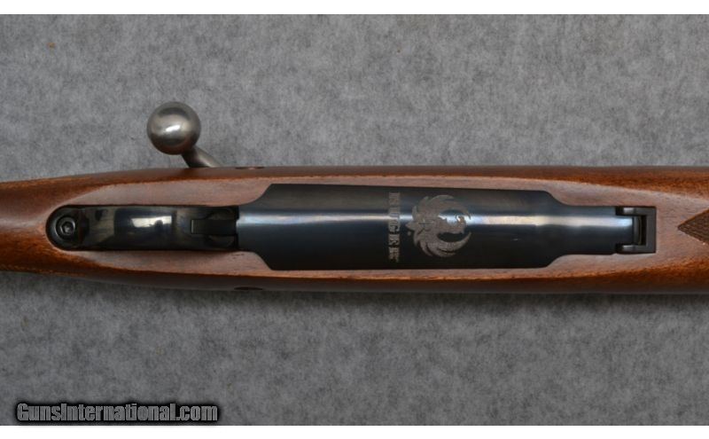 Description: Great rifle. Constructed to Ruger's legendary standards of performance. Ideal for pursuing big game on any continent. Excellent choice for a Fine Rifle, Bolt Gun, or Ruger collection. SOLD Caliber Info: .375 Ruger. Chambers: Bolt action magazine fed repeater. Metal Condition: Very good, with minor handling marks. Wood Condition: Very good, with minor handling marks. Bore Condition: Strong lands and grooves. Barrels: 23 In, Blued, with muzzle break. Triggers: Single. Stock: Walnut with grip cap and black forend tip. Stock Dimensions: LOP 13 5/8 In, DAC 1 1/4 In, DAH 1 3/4 In. Fore End: Walnut with wrap around checkering. Butt Pad: Red rubber, with Ruger logo. Weight: 8 Lb, 2 Oz. Sights: Express style bead front and adjustable rear sights. Item Location: Anchorage, AK |