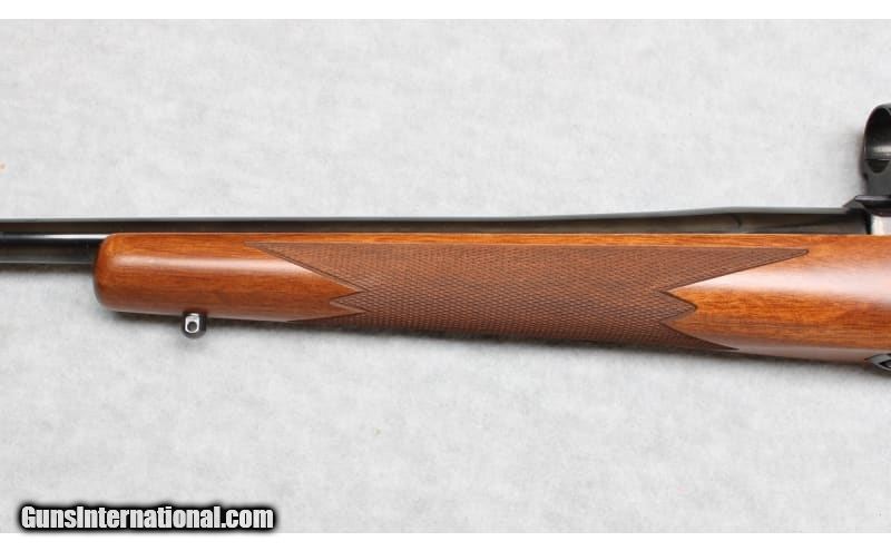 Description: Ruger Model M77 Hawkeye Left Hand Rifle chambered in .223 Remington. This rifle comes with integral scope bases and rings for optics mounting. This rifle has a 3 Position safety, a crisp trigger, and is fitted with a Mauser-style bolt action system and claw extractor. The walnut stock features fine checkering and a red rubber pad. The .223 Remington is a rimless, bottlenecked rifle cartridge developed in 1957. The .223 Remington is considered one of the most popular common-use cartridges. This rifle was manufactured in 2014 and is in excellent condition. .223 Remington SOLD Metal Condition: Excellent Wood Condition: Excellent with very minor handling marks Bore Condition: Bright Barrels: 22 Inches Triggers: Factory Stock Dimensions: LOP 13 1/2 Inches Fore End: Checkered walnut Butt Pad: Rubber pad Sights: Integral scope bases and rings for optics mounting Item Location: La Vista, NE |