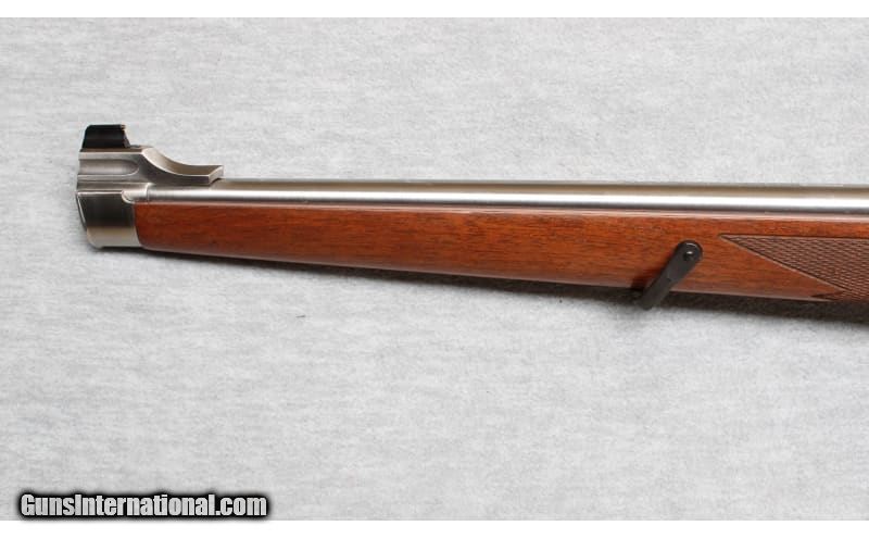 Description: Ruger M77 Hawkeye Stainless Mannlicher chambered in .260 Remington. Rifle has a 18" barrel and a full length Mannlicher stock. Non-rotating, Mauser-type controlled round feed extractor is among the most positive case extraction systems ever invented and features a fixed blade-type ejector that positively ejects empty cases as the bolt is moved fully rearward. Three-position safety is easily accessible and allows the shooter to lock the bolt or to load and unload the rifle with the safety engaged. Cold hammer-forged barrel results in ultra-precise rifling that provides exceptional accuracy and longevity. Hinged, solid-steel floorplate for easy unloading without having to chamber each cartridge. Features an engraved Ruger logo and patented latch that is flush with the trigger guard to avoid accidental dumping of cartridges. Integral scope mounts, machined directly on the solid-steel receiver, provide a stable mounting surface for included scope rings, eliminating a potential source of looseness and inaccuracy in the field. .260 Remington SOLD Metal Condition: Excellent Wood Condition: Excellent Bore Condition: Bright Barrels: 18 Inches Triggers: Factory Stock Dimensions: LOP 13 1/2 Inches Fore End: Checkered walnut Butt Pad: Rubber pad Sights: Milled for Ruger scope rings Item Location: La Vista, NE |
