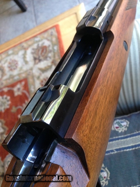 Description: Ruger M77 in 458WM and tang safety. ANIB It's a beautiful rifle with some very minor marks probably more from sitting in a safe that actual use. I doubt its had more that a box of ammo fired through it if any. Check out the bolt face it looks brand new. It has that heavy Ruger barrel and a good weight for the caliber. The action and barrel steel is deep blue and rates excellent. The bolt face still has the original machining marks. The wood is also very good and the checkering is still very sharp and clean (pict 7). The are a a few handling marks that are barely evident on the wood some you can't even see in the pictures (see picts 4, 10). Ruger red pad is still soft. I tried to show detailed pictures of all aspects of the rifle. I can email more pictres if needed. Looks like it was built in 1979-1980 See ://ruger/service/productHistory/RI-M77.html Serial is 74-45xxx Price is $1099 OBO. Please ask any questions and I will be happy to answer them. You wont be disappointed with this one. Buyer pays all shipping charges and I ship UPS ground. I will ship only after funds are confirmed by my bank. No Ruger box. SOLD |