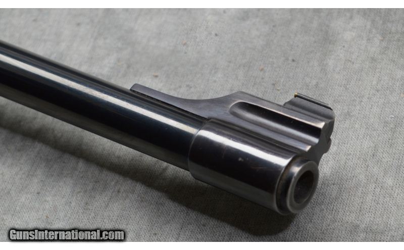Description: An original M77 tang safety model in .35 Whelen, should you need to thump something really hard. Features include the laminated stock and rings for scope mounting. SOLD Manufacturer: 1989 based upon the S/N 772-35xxx Caliber Info: .35 Whelen Metal Condition: Very good. Some chips in the finish on the floorplate and the trigger guard. Wood Condition: Very good to excellent. Some minor handling marks, indicative of a field gun that has been hunted but well-maintained and not abused. Bore Condition: Bright and shiny Barrels: 22 Inch - blued Stock: Laminated hardwood pistol grip. Stock Dimensions: 13 - 5/8 Inch LOP Butt Pad: Black rubber pad Weight: 7 Lb. - 12 Oz. Sights: Gold bead and folding leaf open sights. Set up for your choice of scope. Extras: Scope mounting rings Item Location: Rogers,, MN |
