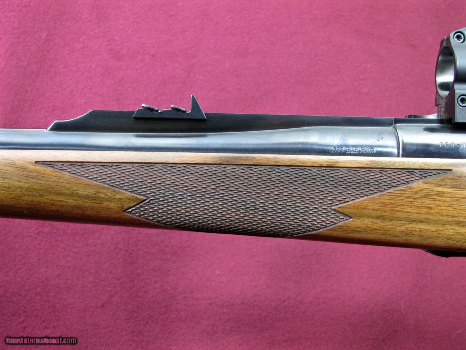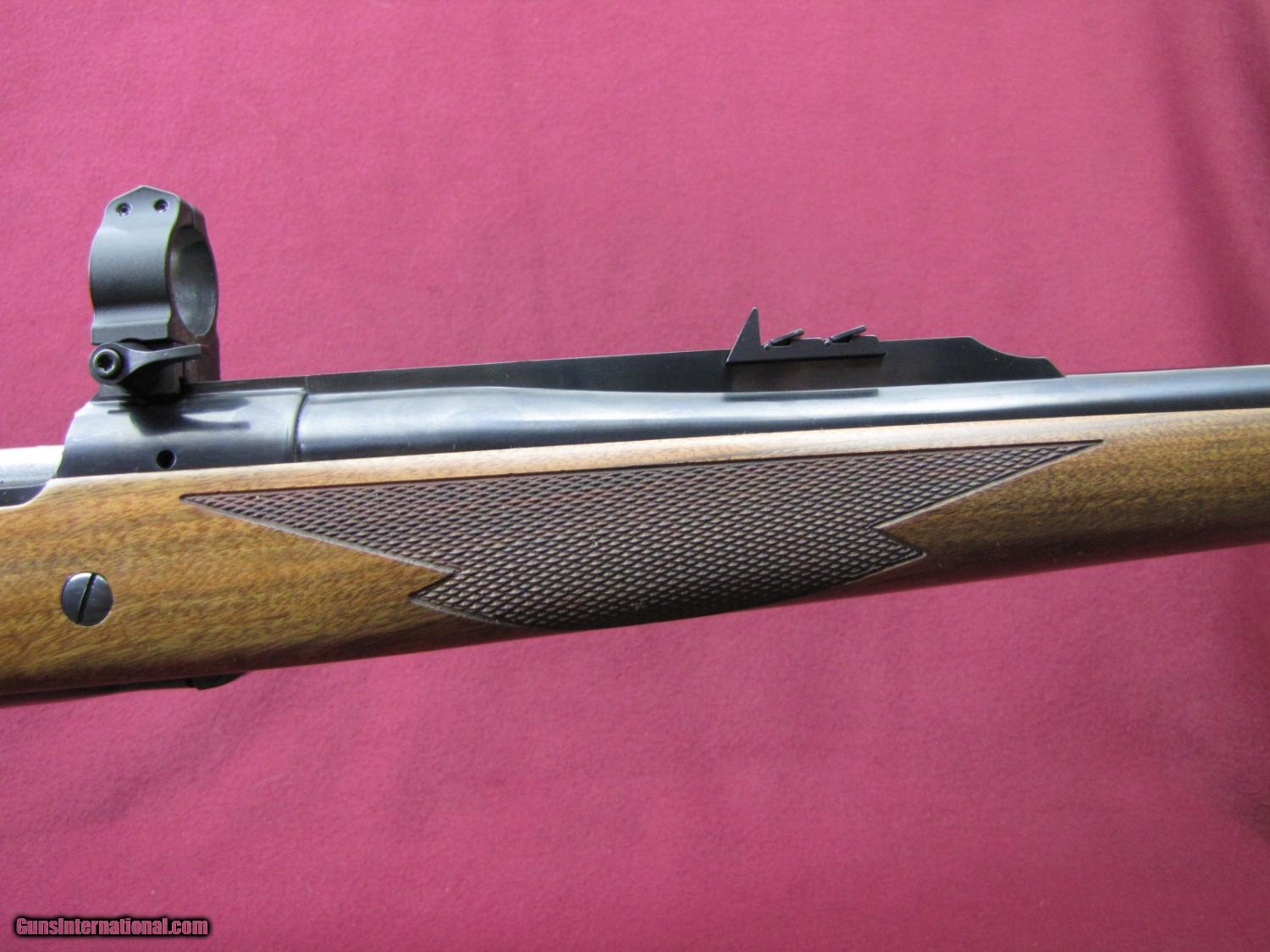 Description: I've decided to sell my Ruger Model 77 Magnum in the venerable 375 H&H caliber. These guns have everything you could ask for in a dangerous game rifle. First of all they have the weight needed to help tame the recoil of these powerful guns, this one weighing 10 pounds 8 ounces. Next, it has controlled round feed so that you are sure when that Buffalo is coming the gun will eject properly and bring in that fresh solid round. Next it has Talley quick detach rings so after the first shot if there is tracking to be done you can quickly remove the scope and use the open sights for quick target acquisition in the brush. And finally you have the most important thing, accuracy. While the 375 H&H caliber seems to normally be an accurate round, this particular gun shoots as well as any rifle I've handled. Using Federal Premium factory ammo this gun will shoot surprising groups with either softs or solids. A few of the other nice features on this rifle are a solid quarter rib with one stand and two flip up sights, a barrel band for your sling, and three position safety. Top all of this off with just about the best piece of Circassian Walnut I've seen on one of these guns you you have a great rifle that you will be proud to own and shoot. Just add a scope of your choosing and you are ready for Africa or Alaska. This gun is all original right down to the recoil pad and the only thing that has been altered is the upgrade from Ruger rings to the Talley quick detach rings. Condition is excellent with only a couple of light handling marks. I've owned this gun for a number of years and it has been fired very little. Price of this rifle is $1450 plus $50 shipping to your FFL. As always there is a three day non-firing inspection period on this gun with the buyer paying shipping charges it returned. Sorry no box or paperwork. SOLD Manufacturer: Ruger Model: Model 77 Magnum Caliber Info: 375 H&H Bore: Excellent Condition: Excellent Metal Condition: Excellent Wood Condition: Excellent Action: Control Round Feed LOP: 13 5/8 Rib: Solid Quarter Finish: Satin Weight: 10 pounds 8 ounces Sights: I standing 2 flip up |