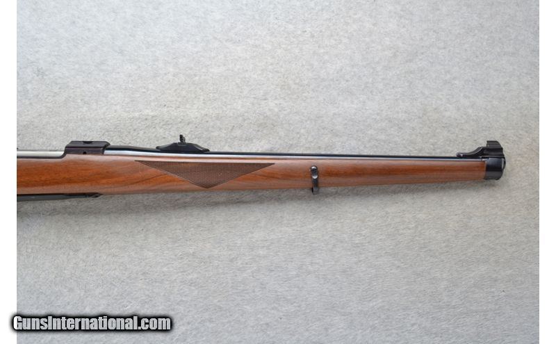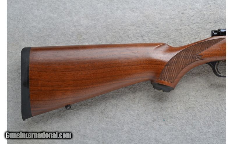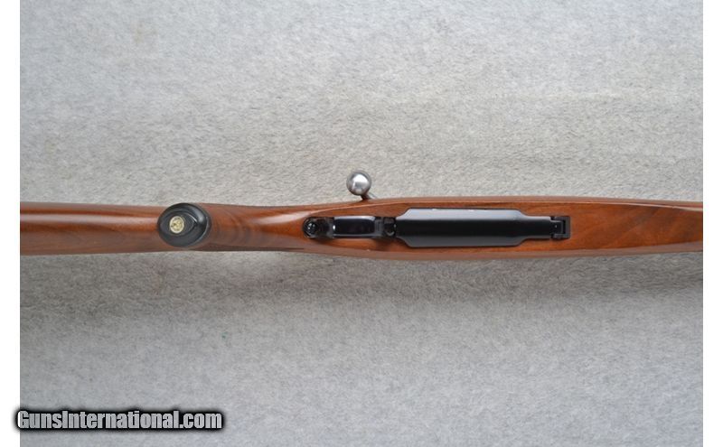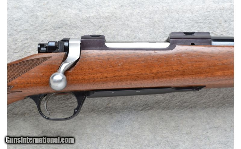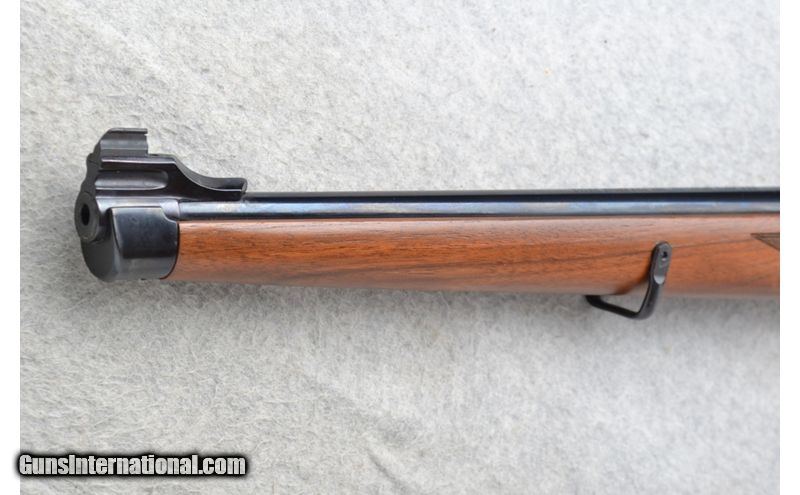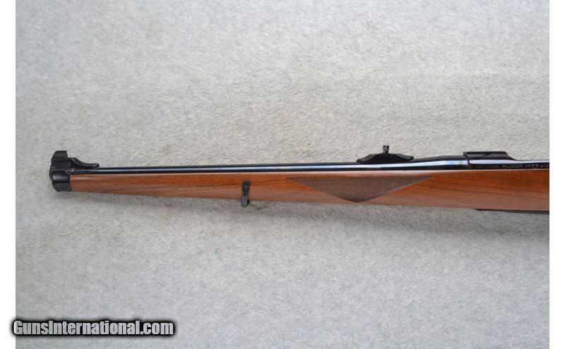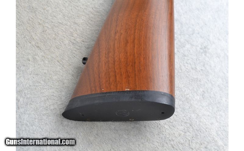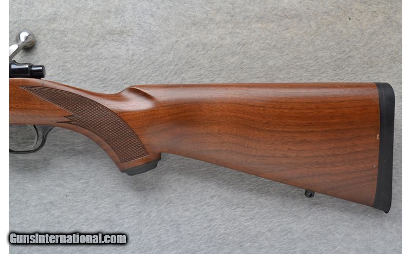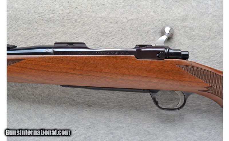 Description: This Ruger Model M77 Mark II is a right hand bolt action rifle in .243 Win. Cal. It has an 18.5 inch barrel. A raised blade front sight, raised folding adjustable notch middle sight and integral scope mount base. The butt stock is a checkered grip walnut pistol grip with a black cap. The forearm is a checkered grip walnut Mannlicher. .243 Winchester SOLD Chambers: Right hand bolt action 4 round magazine with a hinged floor plate. Metal Condition: Excellent. A couple of light handling marks. Wood Condition: Excellent. A few light handling marks. Bore Condition: Excellent. Barrels: 18.5 inch barrel. Triggers: Stainless steel. Stock Dimensions: LOP 13 1/2 inches. Fore End: Checkered grip walnut mannlicher style. Butt Pad: Ruger black rubber pad. Weight: 6 lb. 9 oz. Sights: Raised blade front. Raised folding adjustable notch middle. Integral scope mount base. Item Location: Richfield, WI |