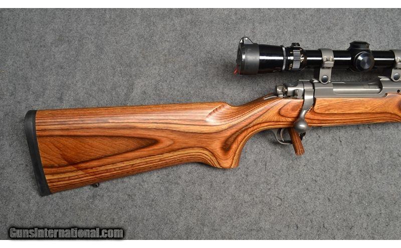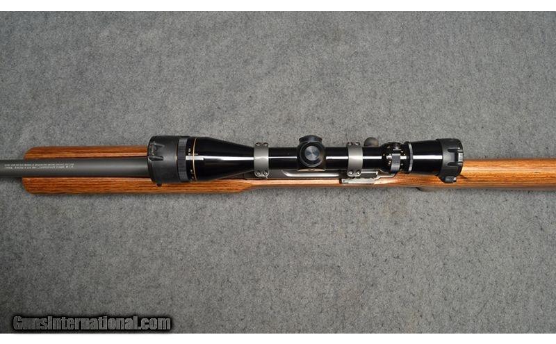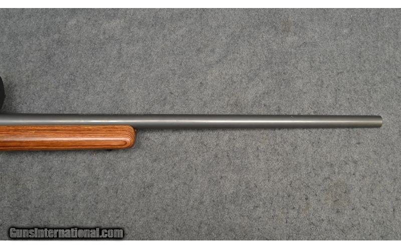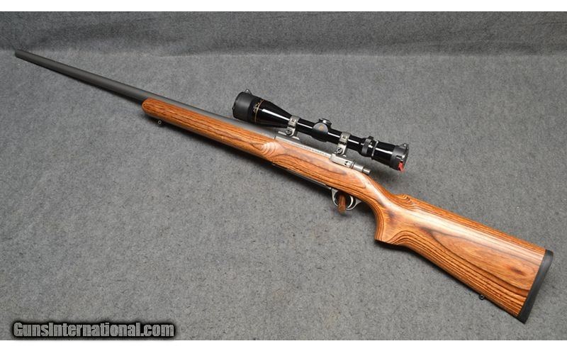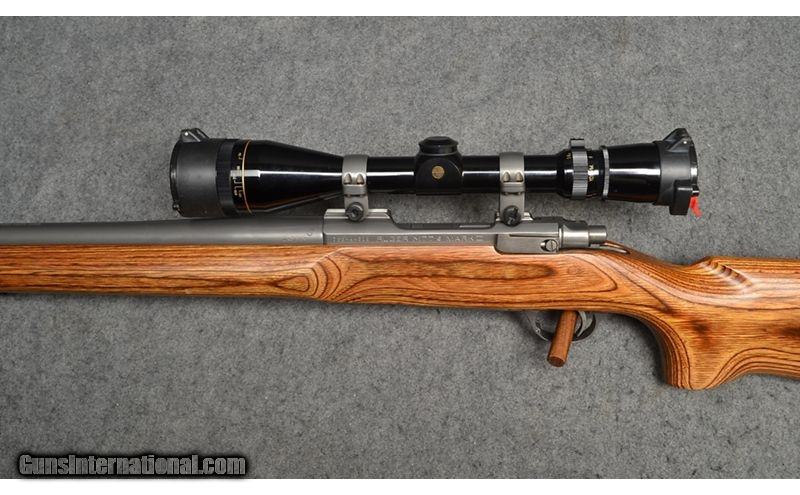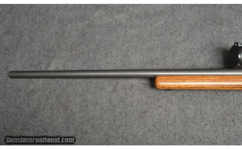 Description: This bolt action centerfire rifle is a Ruger M77 Mark II chambered in .243 Win. It has a 26" heavy contour, hammer-forged barrel, 6 groove rifling, 1:9" twist, target crown, 4 round capacity, hinged solid steel floorplate, 3-position safety, 2-stage target trigger, laminate stock, non-rotating Mauser-style controlled round feed extractor, sling swivel studs top and bottom, and 13.5" length of pull. It is in overall very good condition with some noticeable insignificant handling wear. It comes with a Leupold 4.5 - 14 X 42 scope. Manufactured in 1996. Ruger M77 Mark II Target rifles are time tested, bolt action, special application rifles at a great value. These rifles feature a matte stainless steel finish that resists corrosion. The heavy contour, hammer forged barrel with target crown provides long range accuracy shot after shot. The wide, target forend gives stability on sandbags or other support surfaces. .243 Winchester SOLD Chambers: Non-rotating Mauser-style action Metal Condition: "Overall good condition, with a couple small scuff marks to the barrel Wood Condition: "Overall very good condition, with some very minor handling marks Bore Condition: Bright and shiny with very good rifling Barrels: "26 inch heavy contour, hammer forged barrel Triggers: Two stage target trigger Stock Dimensions: "13½ inch LOP, 46 inches overall length Fore End: "The wide, target forend gives stability on sandbags or other support surfaces. Butt Pad: Original Ruger hard rubber butt pad Weight: 10 lb 8 oz. Sights: 4.5 - 14 X 42 Leupold Scope Item Location: Wichita, KS |