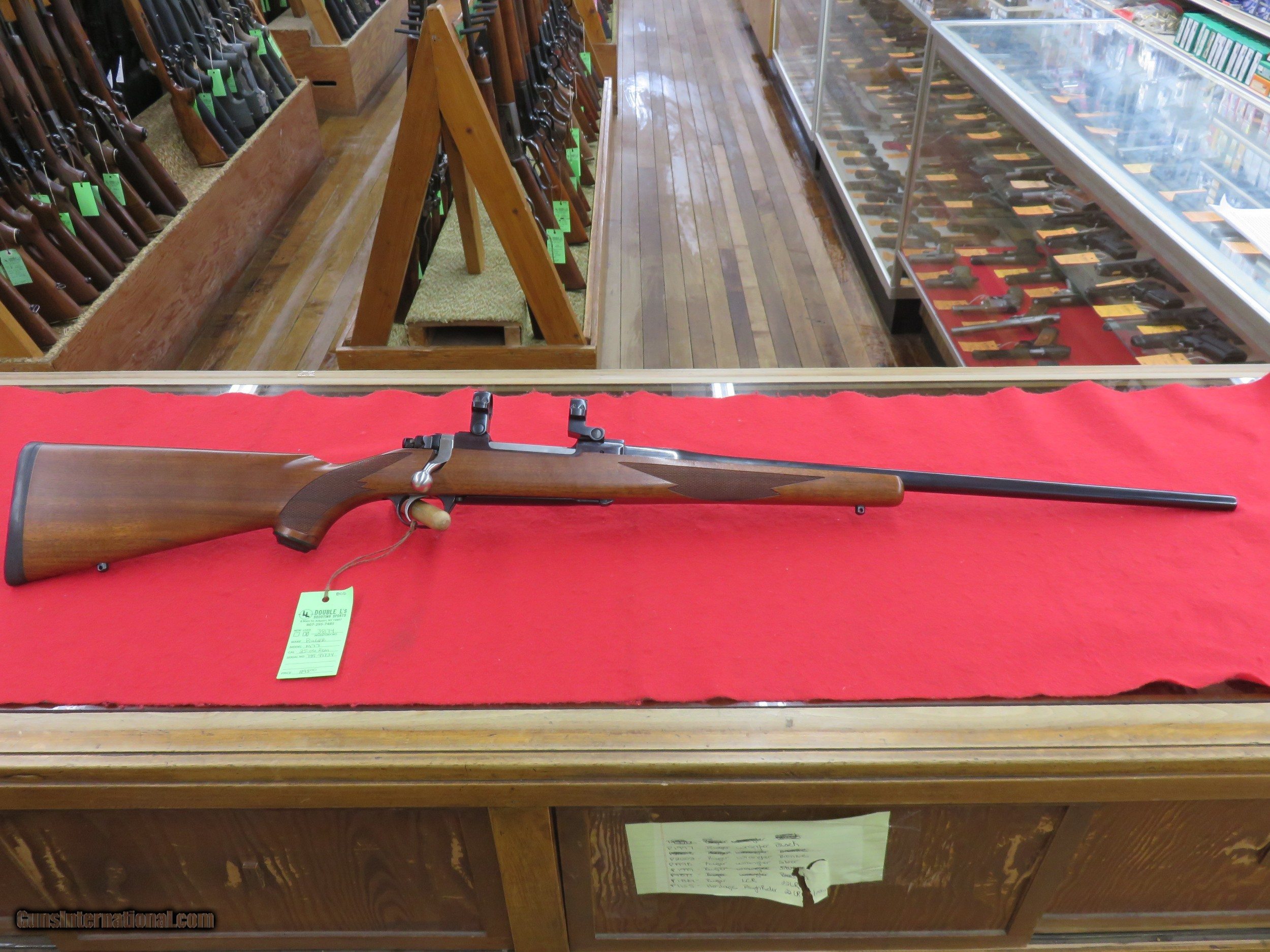Description: Ruger M77 25/06 rem. Three stage trigger on the bolt, Blued metal, walnut stock, with rings. Excellent bore, overall condition is 99%.1195.00Plus 50.00 shipping SOLD Rifle Caliber: .25-06 Remington |