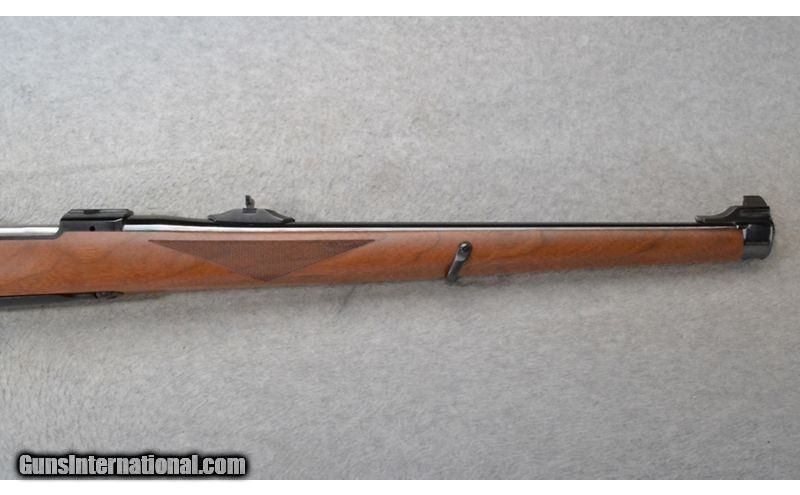 Description: This Ruger Model M77 Mark II is a right hand bolt action rifle in .270 Win. Cal. It has an 18.5 inch barrel. A raised blade front sight and a raised folding adjustable notch middle sight. The butt stock is a checkered grip walnut pistol grip with a black cap. The forearm is a checkered grip walnut Mannlicher style. .270 Winchester SOLD Chambers: Internal magazine with a hinged floorplate. Metal Condition: Excellent. Wood Condition: Excellent. Bore Condition: Excellent. Barrels: 18.5 inch barrel. Stock Dimensions: LOP 13 1/2 inches. Fore End: Checkered grip walnut Mannlicher style. Butt Pad: Ruger black rubber pad. Weight: 6 lb. 14 oz. Sights: Raised blade front. Raised folding adjustable notch middle. Integral scope mount base. Item Location: Richfield, WI |