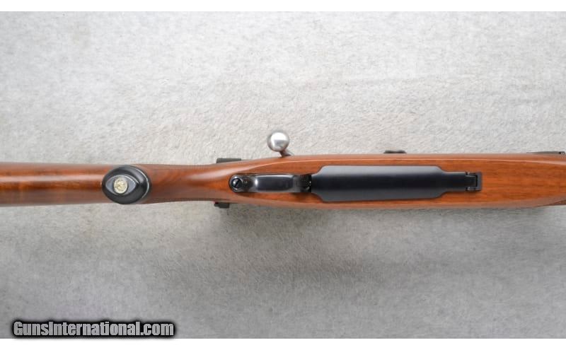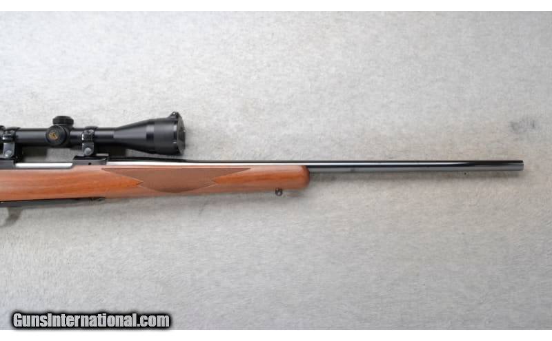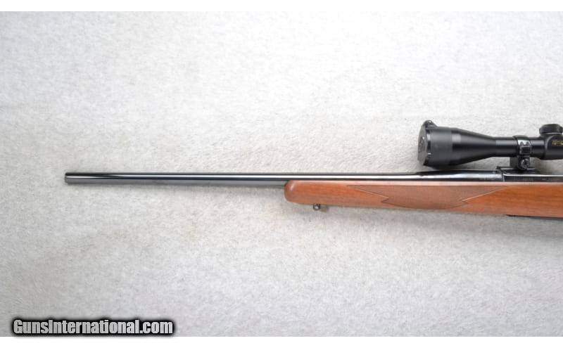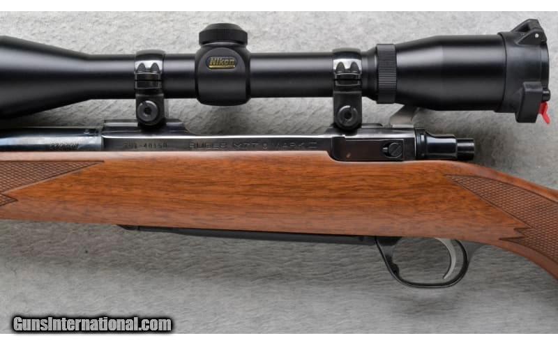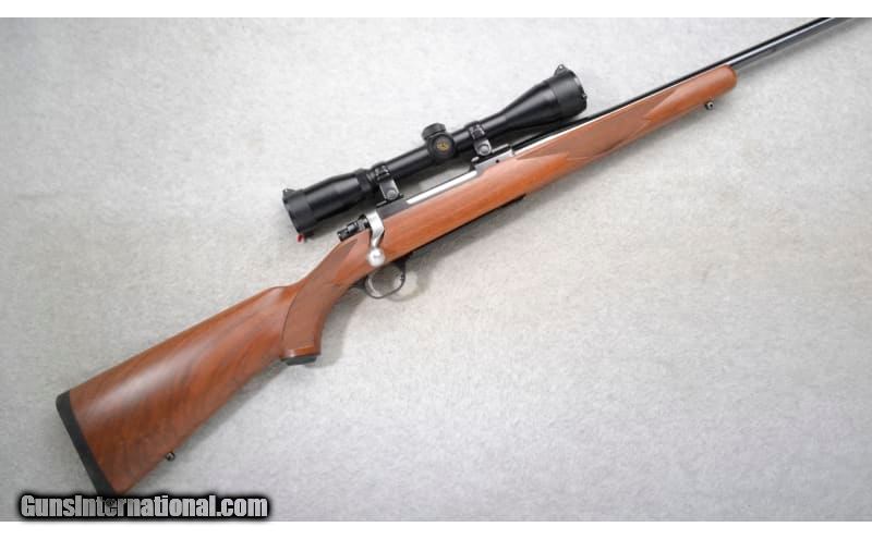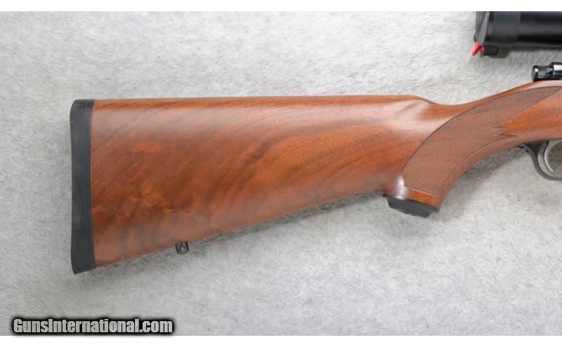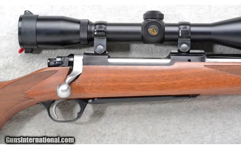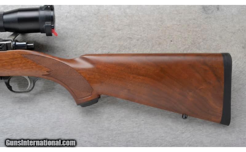 Description: This Ruger Model M77 Mark II is a right hand bolt action rifle in .270 Win. Cal. It has a 22 inch barrel. It is outfitted with a Nikon 4x40 Scope. No iron sights. The butt stock is a checkered grip hardwood pistol grip with a black cap. The forearm is a checkered grip hardwood. .270 Winchester SOLD Chambers: Internal magazine with a hinged floorplate. Metal Condition: Very Good. Wood Condition: Very Good. A few minor handling marks. Bore Condition: Excellent. Barrels: 22 inch. Stock Dimensions: LOP 13 1/2 inches. Fore End: Checkered grip hardwood. Butt Pad: Ruger black rubber pad. Weight: 8 lb. 10 oz. Sights: Nikon 4x40 Scope. No iron sights. Item Location: Richfield, WI |