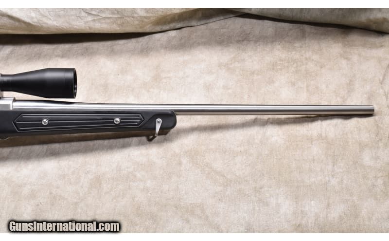 Description: Ruger's all-synthetic, all-weather M77 rifle featuring a black Zytel skeletonized "canoe paddle" stock, satin stainless steel metal, claw extractor, internal magazine, and hinged floor plate. Year of manufacture 1994. It is in excellent condition and shows little evidence of use. .270 Winchester SOLD Chambers: 4 rounds Metal Condition: Excellent. Wood Condition: Excellent. Bore Condition: Shiny and bright with sharp rifling. Barrels: 22-inch Triggers: Factory trigger. Stock Dimensions: 13-5/8 inch LOP. Butt Pad: Soft rubber pad. Weight: 7 lb - 15 oz Sights: Set up for scope and outfitted with a Weaver 3-9x scope. Item Location: Rogers |