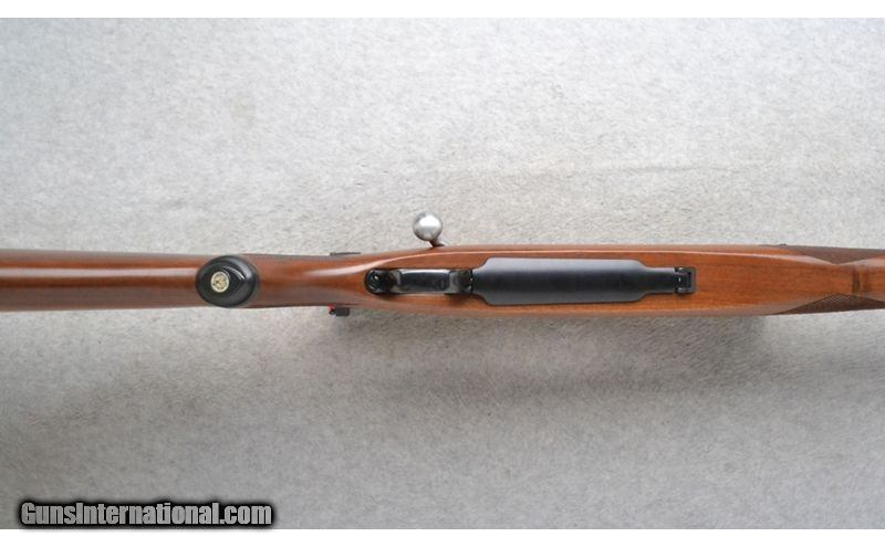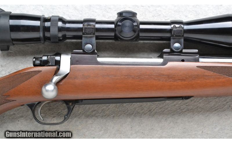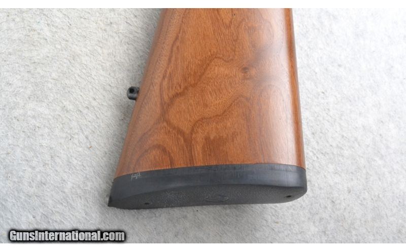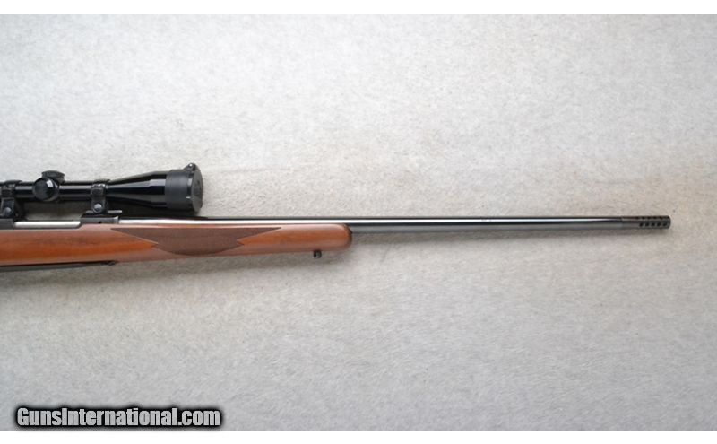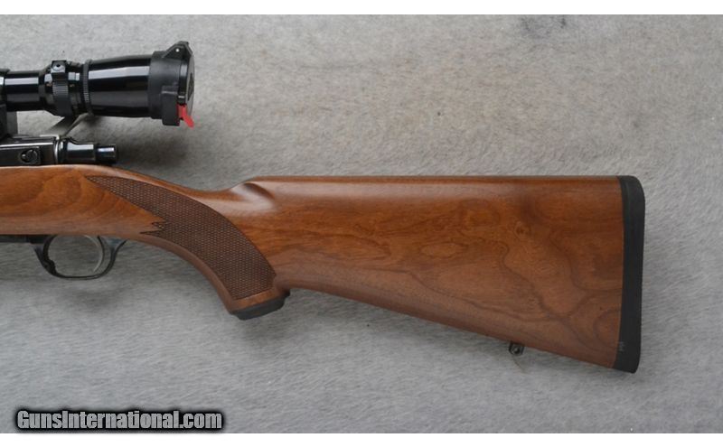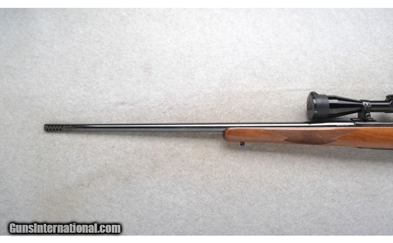 Description: This Ruger Model M77 Mark II is a right hand bolt action rifle in .300 Win. Mag. Cal. It has a 24 inch barrel plus a muzzle device. It is outfitted with a Leupold Scope. No iron sights. The butt stock is a checkered grip hardwood pistol grip with a black cap. The forearm is a checkered grip hardwood. .300 Winchester Magnum SOLD Chambers: Internal magazine with a hinged floorplate. Metal Condition: Excellent. Wood Condition: Excellent. A couple of minor handling marks. Bore Condition: Excellent. Barrels: 24 inch barrel plus a muzzle device. Stock Dimensions: LOP 13 1/2 inches. Fore End: Checkered grip hardwood. Butt Pad: Ruger black rubber pad. Weight: 9 Lb. 4 Oz. Sights: Leupold VARI-X III 3.5-10x40 Scope. No iron sights. Item Location: Richfield, WI |