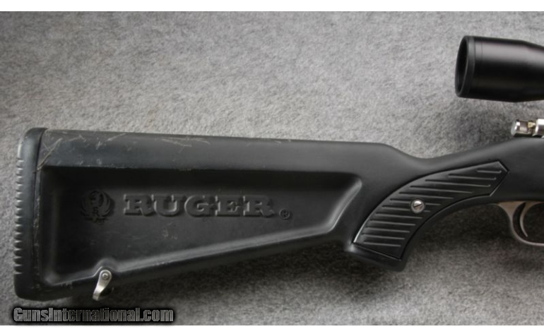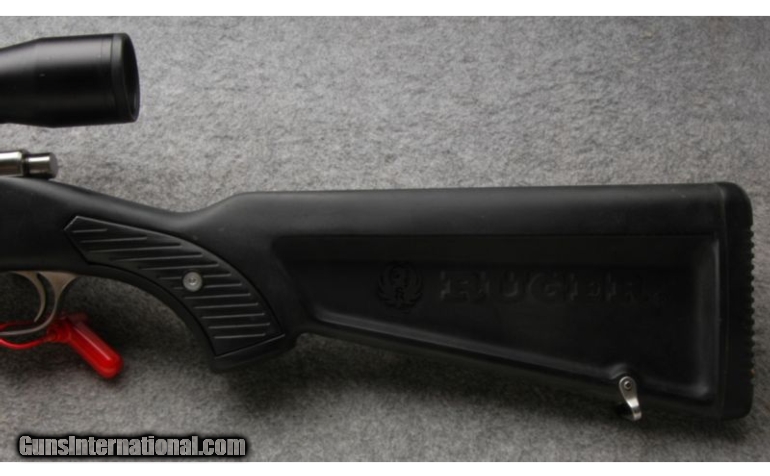 Description: This is a nice Ruger M77 with a black Skeleton stock. Rifle with this stock are getting hard to find. SOLD Caliber Info: .300 Win Mag. Chambers: Bolt action repeater. Metal Condition: Excellent with a few minor marks. Wood Condition: The stock has some scrapes on the top right side. Bore Condition: Excellent. Barrels: 25 Inch Stainless steel. Triggers: Single. Stock: Black Skeleton style with sling mounts. Stock Dimensions: 13 5/8 Inch LOP. Butt Pad: Factory black rubber butt pad. Weight: 8 LBS 13 OZ as pictured with the scope. Sights: Nikon Buckmasters 3-9 X 40 rifle scope. Extras: Comes with the rings and Nikon scope. Item Location: Owatonna, MN |