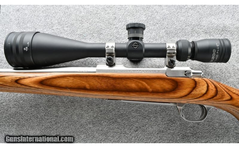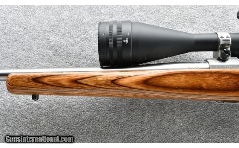 Description: This Ruger M77 MK II left the factory in 1998, and it looks like it left yesterday. Very good shape and well cared for. .308 Winchester SOLD Chambers: .308 Winchester in a four round box magazine bolt action rifle Metal Condition: Very good Wood Condition: Very good Bore Condition: Very good + Sharp and bright Barrels: 22" Stainless Steel Triggers: Factory Stock Dimensions: 13 1/2" LOP Fore End: Laminated wood with sling stud Butt Pad: Black Ruger rubber Weight: 9 lbs. 6 oz. Sights: "No Sights, fitted with a Tasco World Class 10-40X50 AO Scope with screw on lens covers Item Location: Grand Junction, CO |