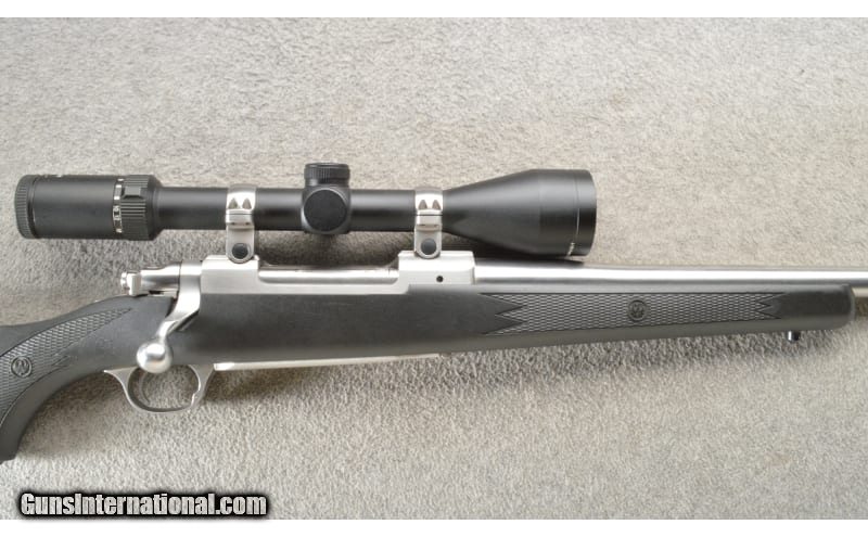 Description: 2001 RUGER M77 MARK II bolt action rifle chambered in 338 Winchester magnum. This Ruger features a 24" barrel, brushed stainless finish, black composite stock with a Ruger medallion grip cap, internal box magazine with hinged floor plate, Weaver 4x16x44mm scope, Ruger soft rubber recoil pad. The right side of the stock does show a couple of dull spots in the finish of the stock. Serial #788-67636. Great condition with minimal handling wear. .338 Winchester Magnum SOLD Chambers: Bolt action. Metal Condition: "99%, light surface finish scuff on the left side barrel down by the muzzle. Bore Condition: Bright strong bore. Barrels: 24" barrel. Triggers: Single. Fore End: Synthetic. Butt Pad: Rubber. Weight: 9 LBS Sights: Scope. Item Location: Owatonna, MN |