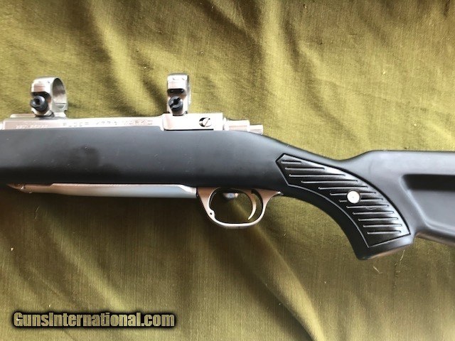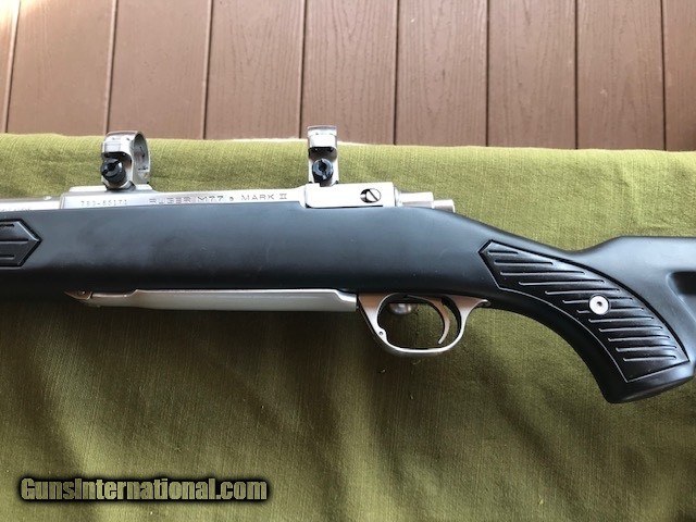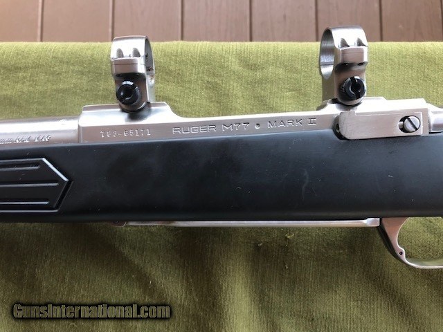 Description: Ruger M77 Mark II stainless with skeleton/paddle stock. Gun is in good condition but has seen field duty. 24" barrel with muzzle brake. Also has single stud on forearm for mounting tripod. Excellent trigger. My former elk gun. SOLD Rifle Caliber: 7mm Remington Magnum Manufacturer: Ruger Model: M77 Mark II |