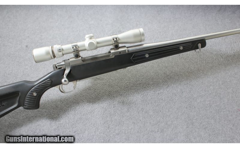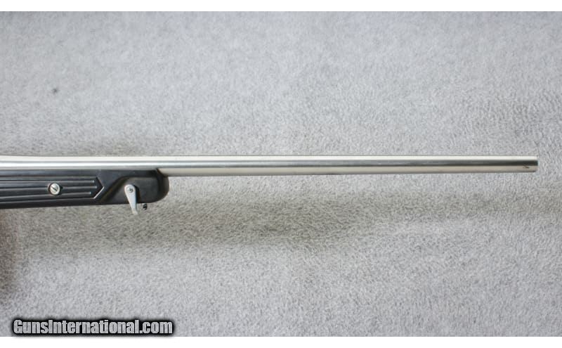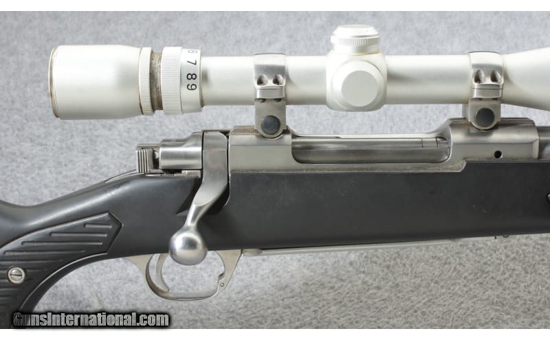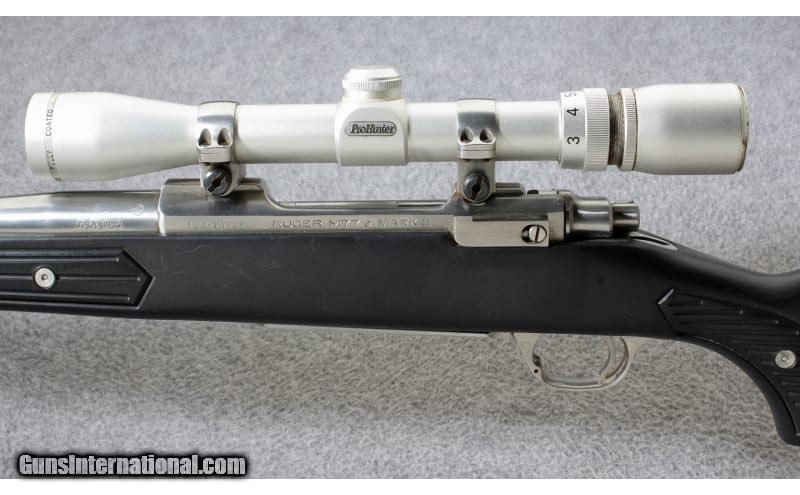 Description: The Ruger M77 Mark II All Weather rifles with the Dupont Zytel stocks (often called the canoe paddle stocks) have developed a cult like following. They feature: a control round feed action, a large Mauser style claw extractor, three position safety, hinged floorplate and weather resistant stainless-steel construction. This rifle was manufactured in 1992. .30-06 Springfield SOLD Metal Condition: Very good with some scratches Bore Condition: Excellent Barrels: 22 inch stainless barrel Stock Dimensions: 13 1/2 inch LOP Weight: 7 Lbs. 14 Oz. Sights: Simmons Pro Hunter 3-9x scope Item Location: Lehi, UT |