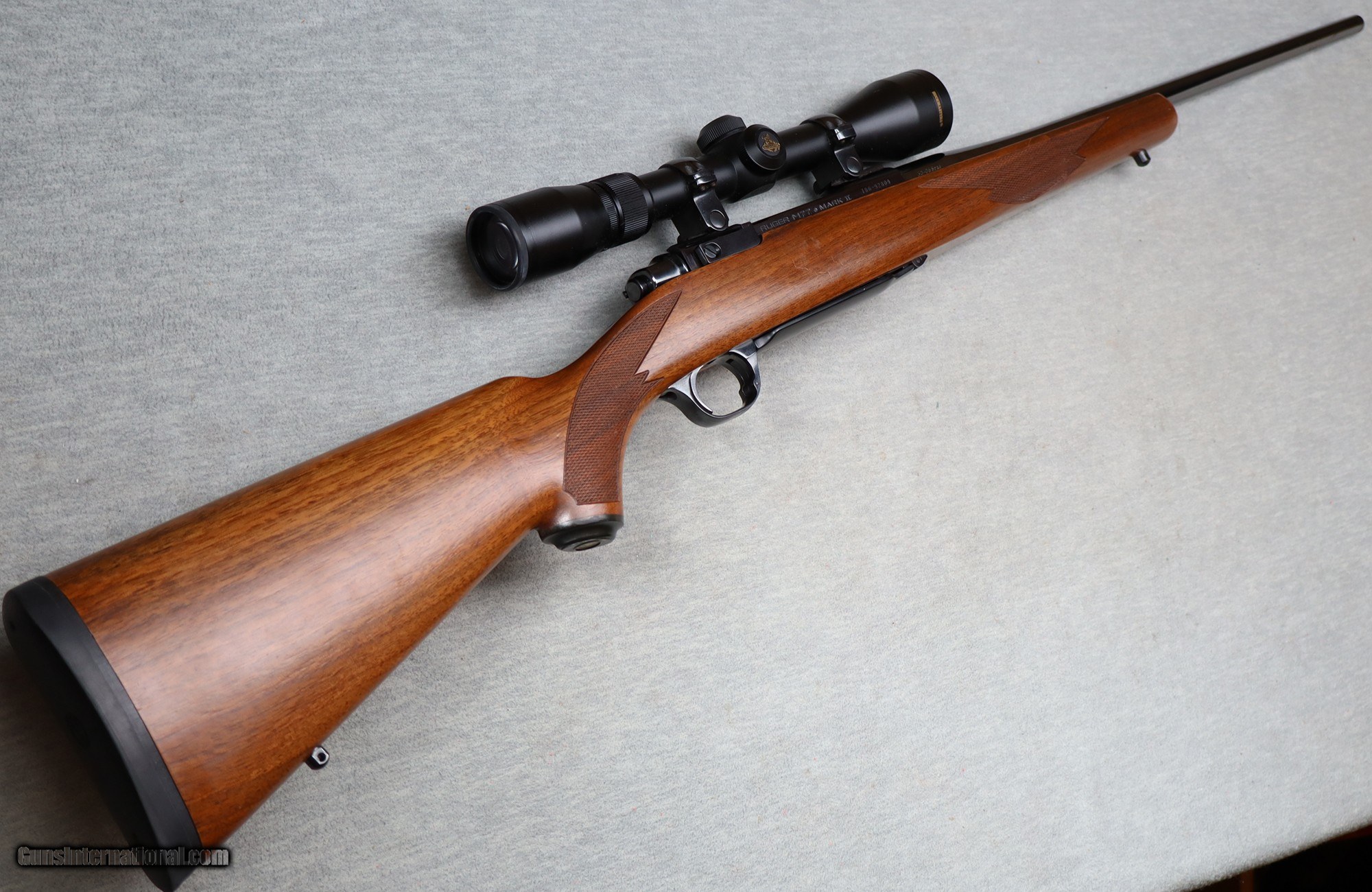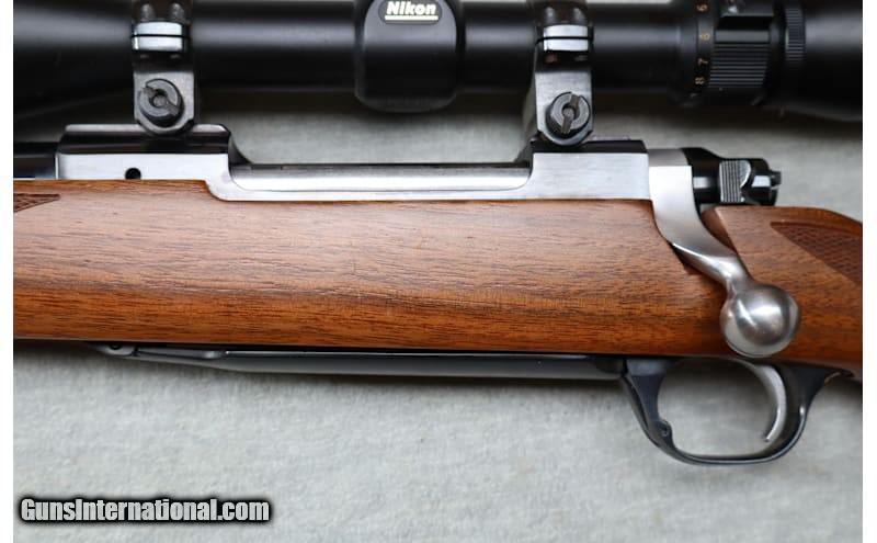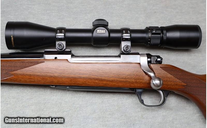 Description: Ruger M77 Mark II Left Hand, bolt action rifle with a 22 inch barrel and chambered in .30-06 Springfield. Rifle is topped with a Nikon scope. Finish is very nice with rifle showing little wear. .30-06 Springfield SOLD Metal Condition: good Wood Condition: very good Bore Condition: bright Barrels: 22" barrel Stock Dimensions: 14 Fore End: checkered wood Butt Pad: rubber Weight: 8 lb - 6 oz. with scope Sights: Nikon Buckmasters 3-9x40 scope Item Location: La Vista, NE |