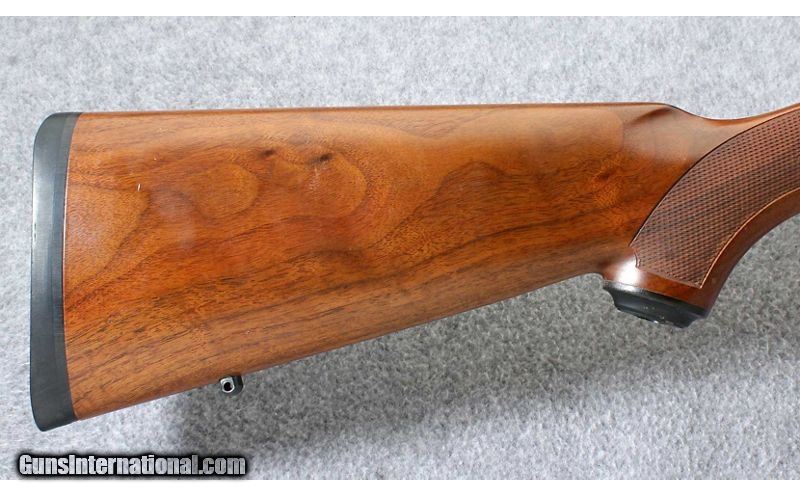 Description: The Ruger M77 is a solid performer. This rifle features: a control round feed action, large Mauser style claw extractor, a three-position safety, hinged floor plate, checkered walnut stock and high polished blued steel. Manufactured 2005 .25-06 Remington SOLD Metal Condition: Very good with finish wear on the end of the barrel and the sharp edges Wood Condition: Very good with some dents and scratches Bore Condition: Excellent Barrels: 24 inch heavy barrel Stock Dimensions: 13 1/2 inch LOP Fore End: Checkered walnut Butt Pad: Ruger pad Weight: 9 lbs. 6 oz. Sights: Burris Fullfield II 3-9x scope with Ballistic Plex reticle Item Location: Lehi, UT |