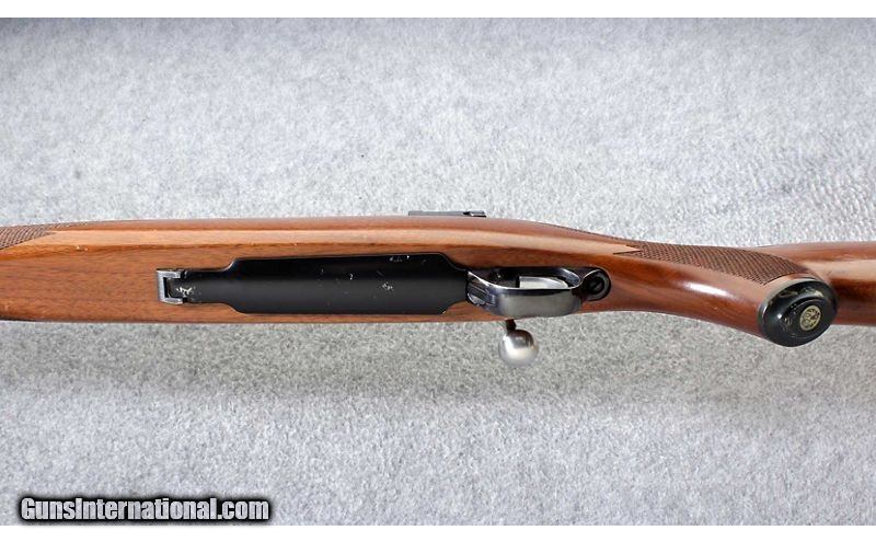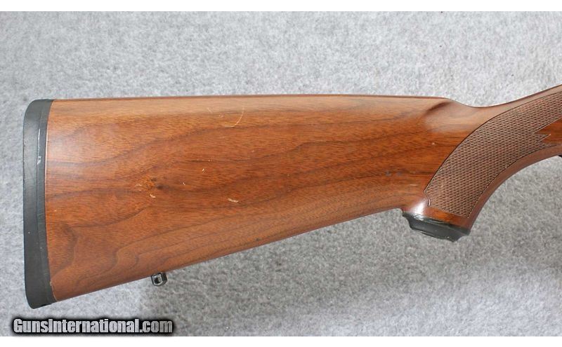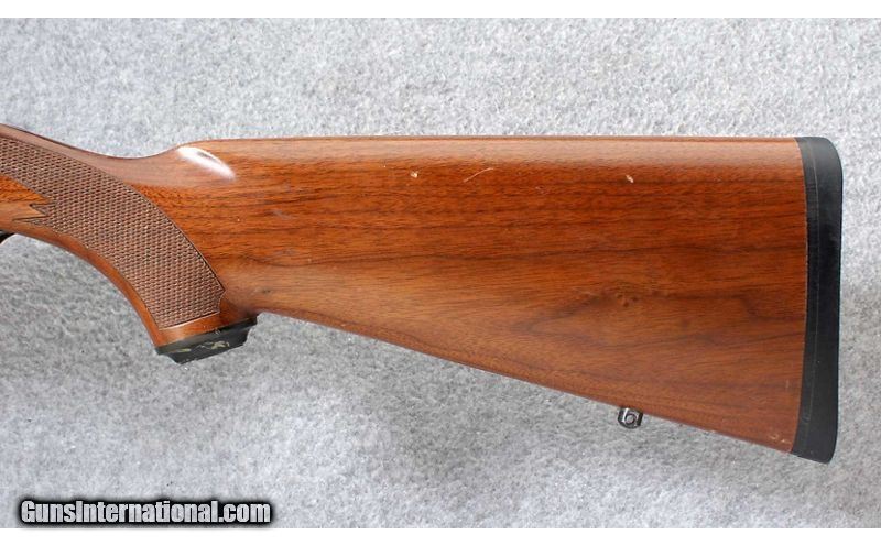 Description: The Ruger M77 is a solid performer. This rifle features: a control round feed action, large Mauser style claw extractor, a three-position safety, hinged floor plate, checkered walnut stock and high polished blued steel. Manufactured 1999 7mm Remington Magnum SOLD Metal Condition: Very good with a few scratches on the bottom metal Wood Condition: Very good with some dents and scratches Bore Condition: Excellent Barrels: 24 inch barrel Stock Dimensions: 13 5/8 inch LOP Fore End: checkered walnut Butt Pad: Ruger pad Weight: 7 lbs. 1 oz. Sights: Receiver dovetailed for scope mounting Item Location: Lehi, UT |