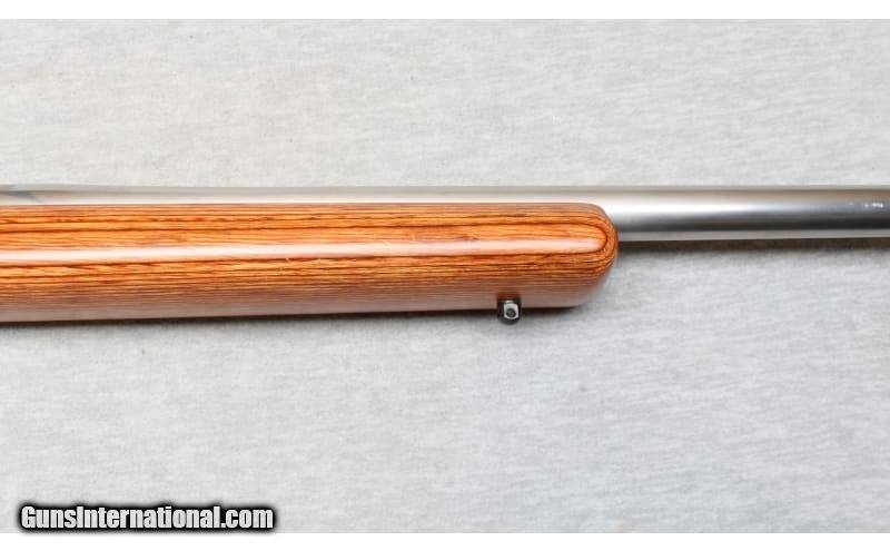 Description: Ruger M77 Mark II Varmint bolt action rifle chambered in .223 Remington. This rifle comes with a 26-inch stainless-steel barrel. It has a highly reliable Mauser-type controlled round feed extractor, a 3-position safety, and a cold hammer-forged barrel. It has integral scope mounts, machined directly on the solid-steel receiver. It has a laminated stock and rubber recoil pad. Built in 1993. The .223 Remington is a rimless, bottlenecked rifle cartridge developed in 1957. The .223 Remington is considered one of the most popular common-use cartridges. .223 Remington SOLD Metal Condition: Excellent Wood Condition: Excellent Bore Condition: Bright Barrels: 26 Inch Stainless Triggers: Factory Stock Dimensions: LOP 13 3/4 Inches Fore End: Smooth laminate Butt Pad: Rubber pad Sights: "It has 1-inch rings with integral scope mounts, machined directly on receiver Item Location: Rapid City, SD |
