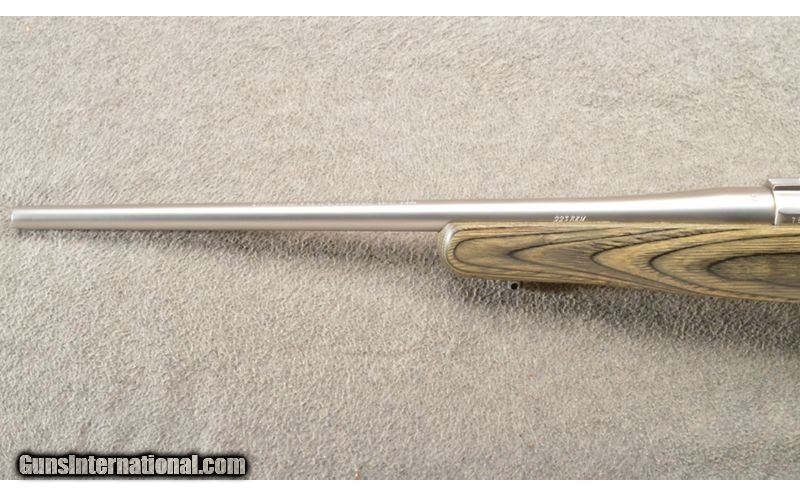Description: This is a like new Ruger M77 Maark II Youth rifle in .223 Rem. The rifle has a 16" stainless steel barrel a dn action. The stock is a gray laminate .223 Remington SOLD Chambers: Bolt action repeater. Metal Condition: Excellent. Wood Condition: Excellent. Bore Condition: Bright and shiny. Barrels: 16" Stainless steel. Triggers: Single stainless steel. Stock Dimensions: 12 1/4" LOP. Fore End: Gray laminate with a sling stud. Butt Pad: "Matching gray laminate with a pistol grip, grip cap, sling stud and black rubber butt pad. Weight: 6 lbs. 6 oz. Sights: Milled receiver for Ruger rings. Item Location: Owatonna, MN |