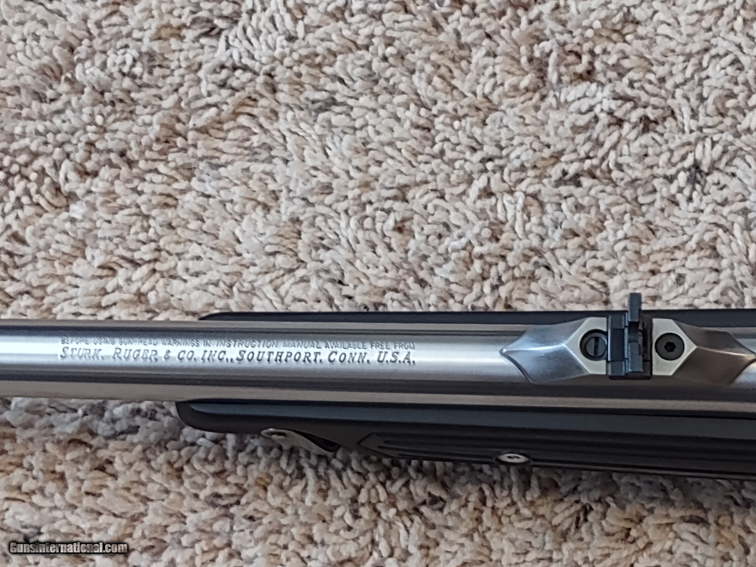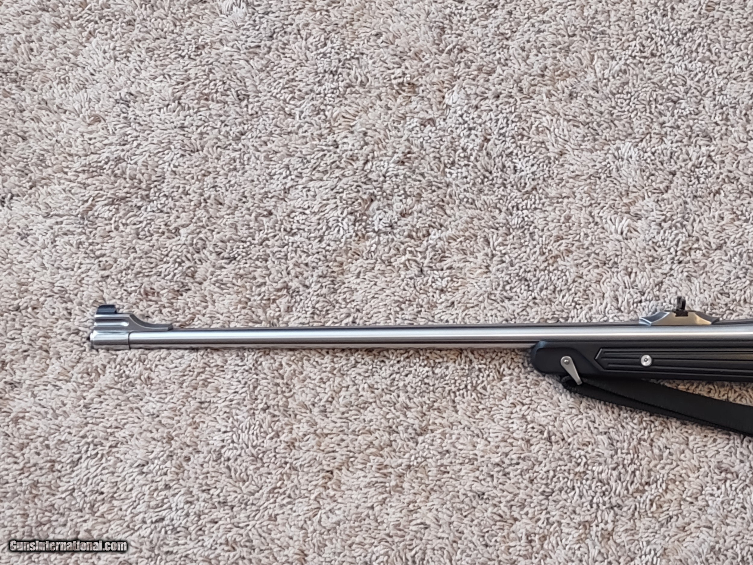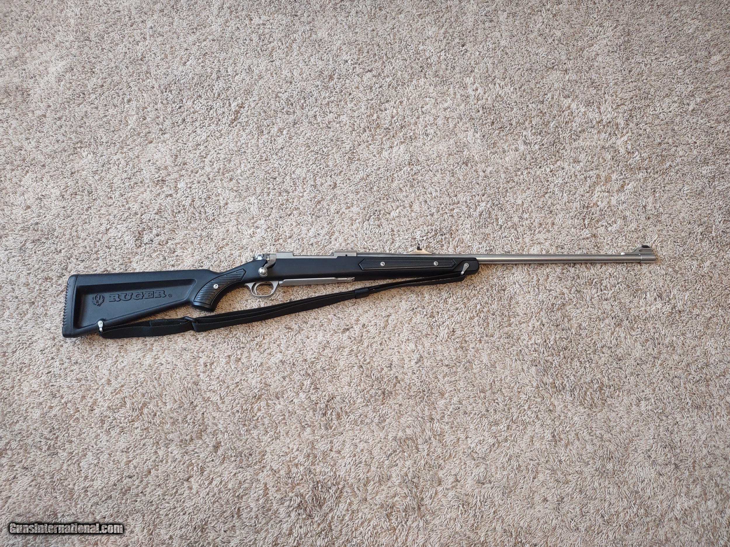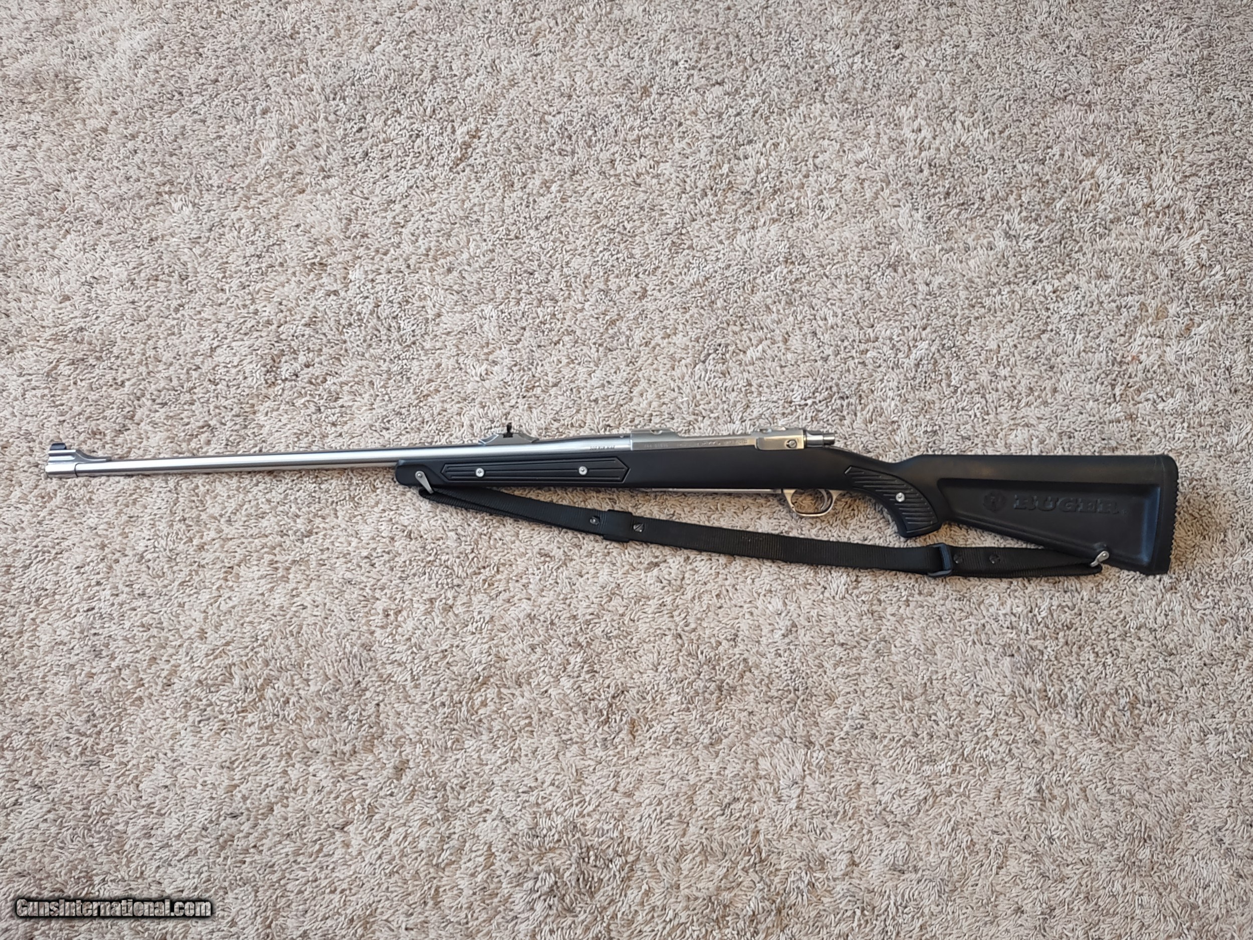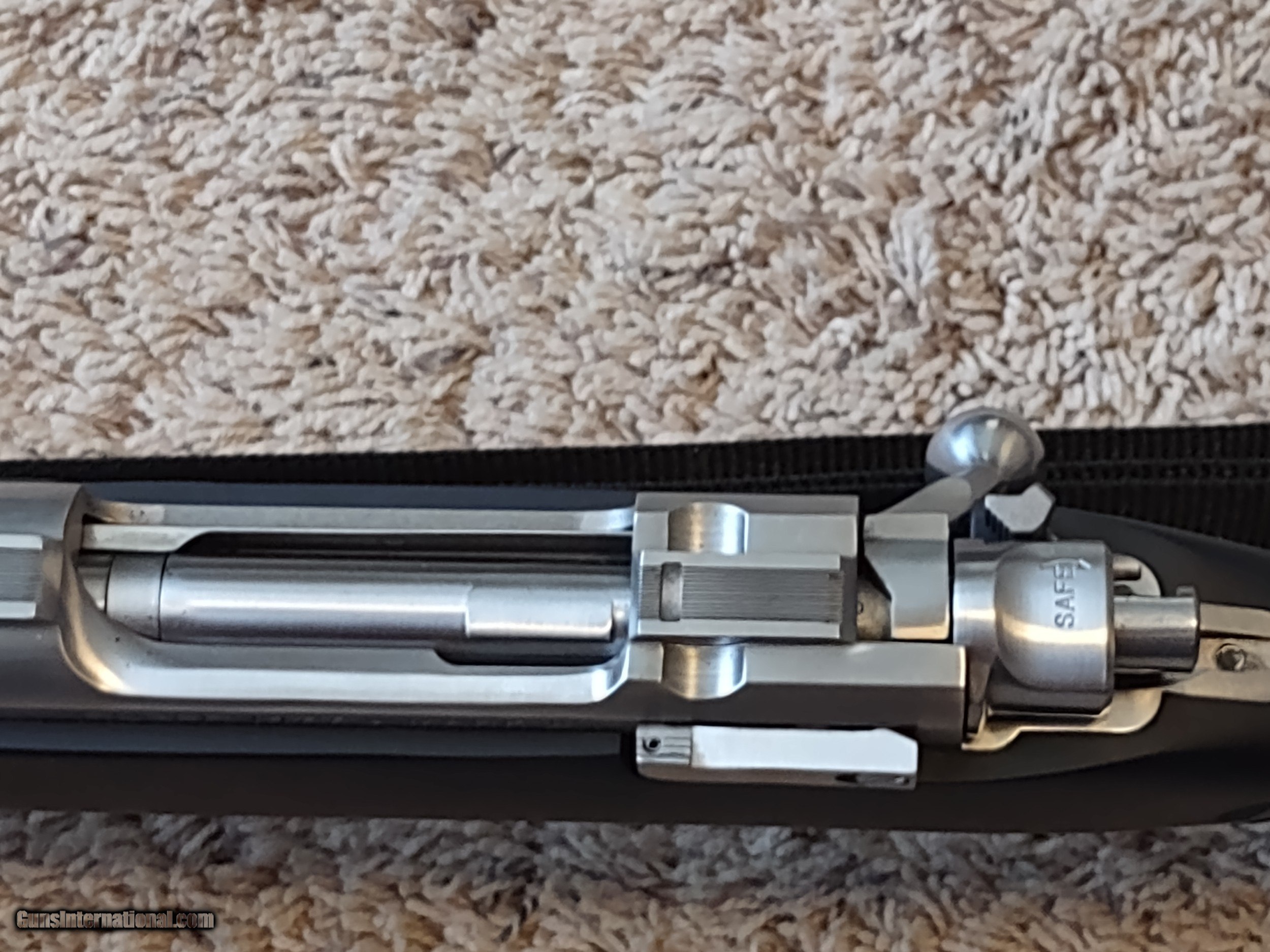 Description: Ruger M77 Mark ll stainless steel zytel skeleton paddle stock 300 win mag bolt action rifle excellent condition , stock excellent condition, metal excellent condition only minor mar on back of hinge plate can be seen in pictures, early production with factory iron sights, serial number 784-09536, $45 shipping SOLD Rifle Caliber: .300 Winchester Magnum Manufacturer: Ruger Model: M77 Mark ll Serial Number: 784-09536 Barrel Length: 24 Condition: Excellent Metal Condition: Excellent |
