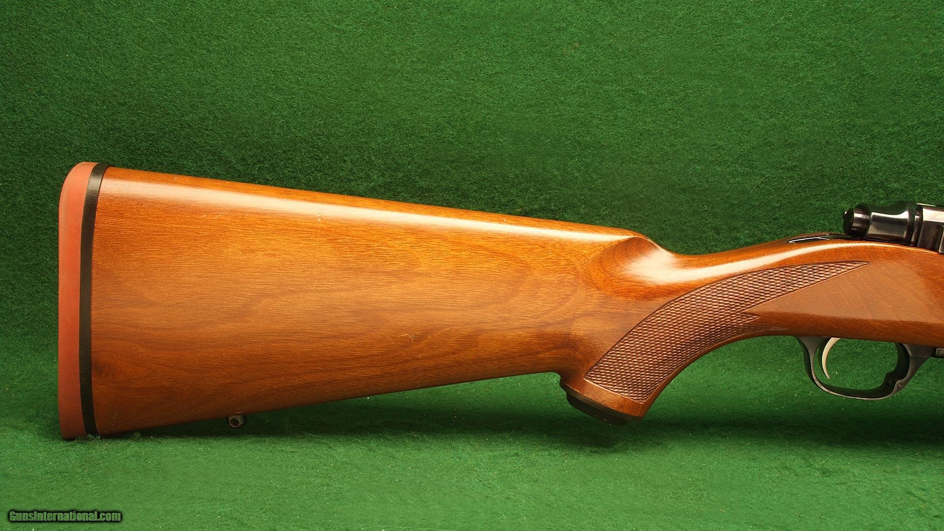 Description: This is a used Ruger left hand model 77 Mk II in caliber 338 Winchester Magnum. The gun shows light handling wear with a few scuffs to the walnut stock and aluminum floor plate. Ruger's one inch rings are included. The previous owner left a printed strip on the right side of the stock which showed his favorite load and ballistics out to 500 yards. SOLD Manufacturer: Ruger Model: M77 Mk II (LH) Caliber Info: 338 WM Barrels: 24 |