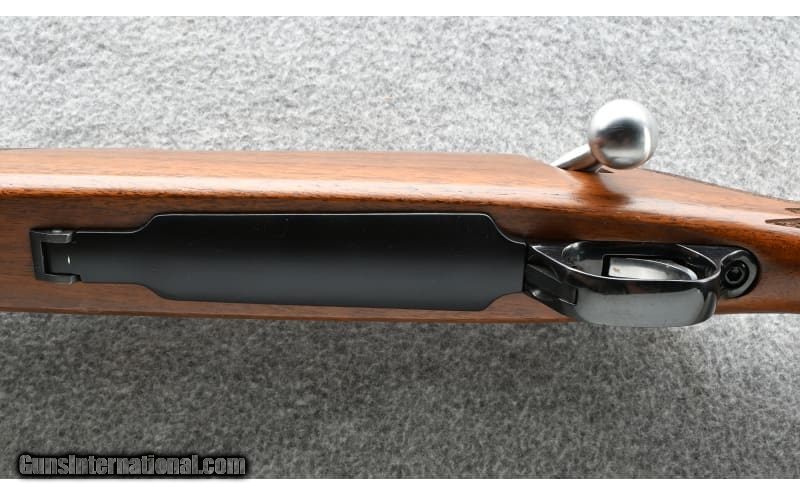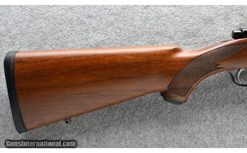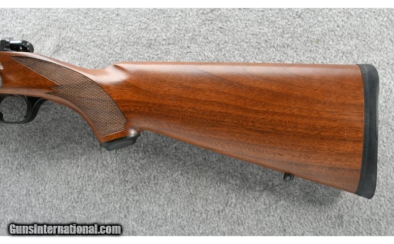 Description: Shipped in 1998, this rifle appears barely used. 7mm Remington Magnum SOLD Chambers: 7 mm Remington Magnum in a three round box magazine Left Hand bolt action rifle Metal Condition: Very good appears near new Wood Condition: Very good Bore Condition: Bright and sharp Barrels: 24 Triggers: Adjustable Stock Dimensions: 13 5/8" LOP Fore End: Checkered walnut with sling stud Butt Pad: Ruger black rubber Weight: 7 Lbs. 6 Oz. Sights: "No sights, designed with integral scope bases Item Location: Grand Junction, CO |