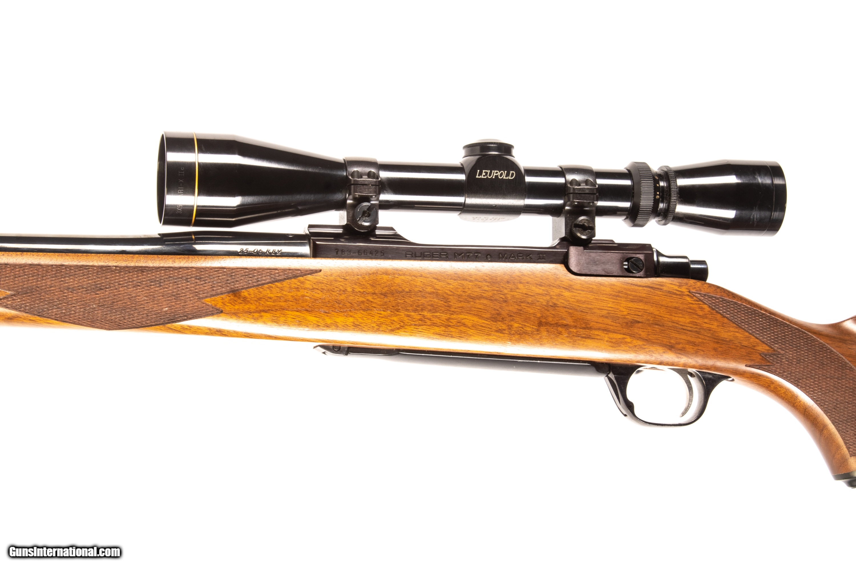 Ruger M77 MKII chambered in 25-06 with a 24 inch barrel bright & shiny bore and a Leupold VARI-X II 3x9 optic. This is a used firearm that is in excellent condition and is covered by Dury's Lifetime Warranty.