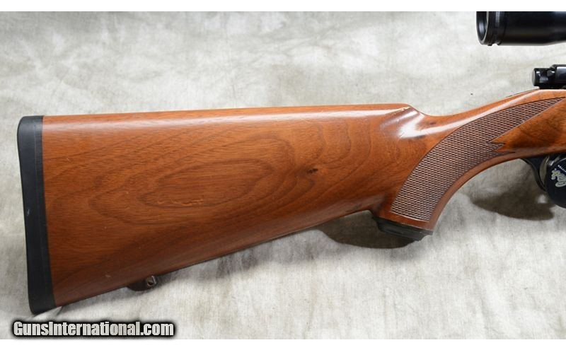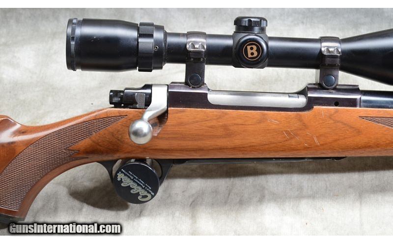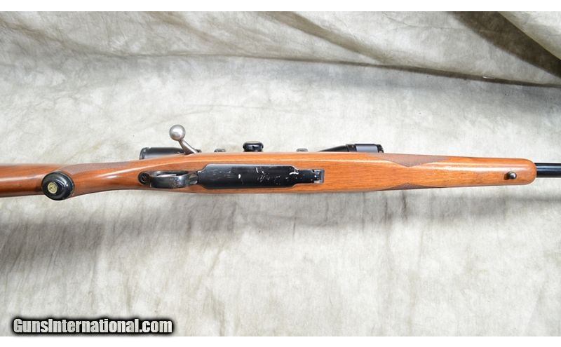 Description: Good workhorse gun with checkered walnut stock, Mauser claw extractor, scope and internal box magazine with hinged floor plate. .25-06 Remington SOLD Chambers: 4 Metal Condition: Very good. There are some scratches on the floor plate and trigger guard. Wood Condition: "Very good. A number of shallow scratches, spread over most of the wood. Bore Condition: Shiny and bright with good rifling. Barrels: 24-inch Triggers: Factory trigger. Stock Dimensions: 3-1/2 inch LOP. Butt Pad: Soft rubber pad. Weight: 9 lb - 3 oz Sights: Scope-ready and outfittd with a Bushnell 4x12 scope. Item Location: Rogers |