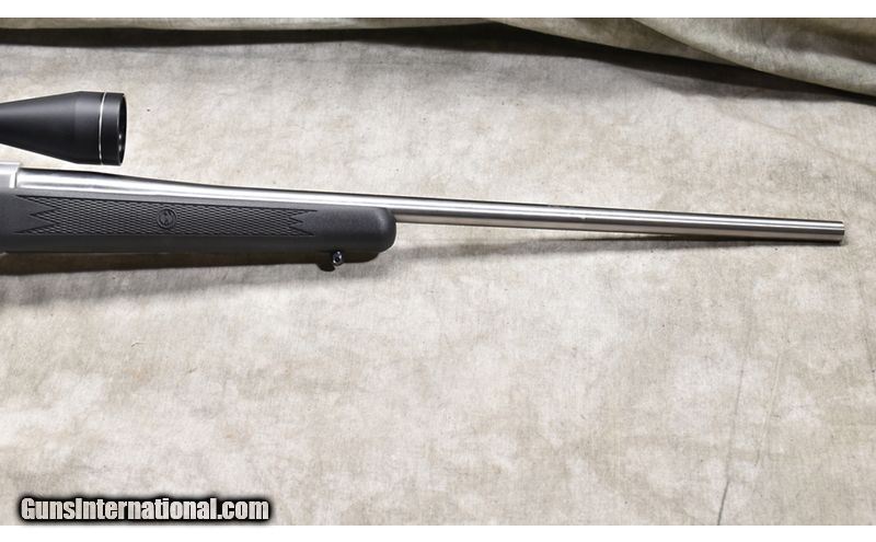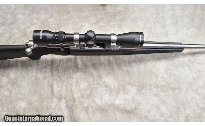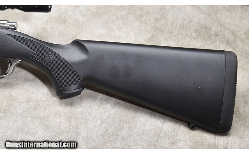 Description: This all-weather stainless and synthetic M77 Mark II features internal box magazine with hinged floor plate, and in like new condition. It may have been fired, but it doesn't show. .30-06 Springfield SOLD Chambers: 4 Metal Condition: "Excellent condition on the gun, scope has a few scratches. Wood Condition: Excellent. Bore Condition: Shiny and bright. Barrels: 22-inch satin stainless steel Triggers: Factory trigger. Stock Dimensions: 13-3/8 inch LOP. Butt Pad: Soft rubber pad. Weight: 9 lb - 5 oz Sights: Set up for your choice of scope and outfitted with a Tasco 3-9x scope. Item Location: Rogers |